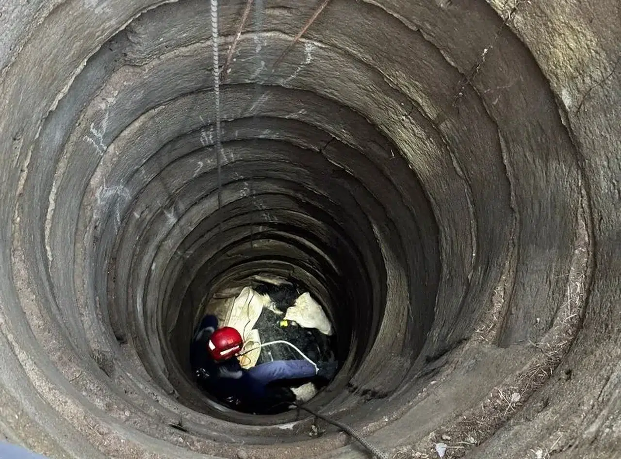 Balıkesir’in Gömeç ilçesinde bir büyükbaş hayvan, düştüğü kuyudan itfaiye ekipleri tarafından vinçle kurtarıldı.