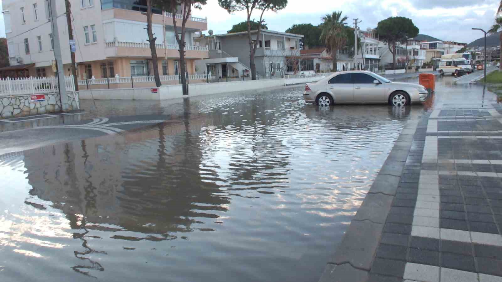 Balıkesir’de Plajı Aşan Deniz Suları Yolları Göle Çevirdi