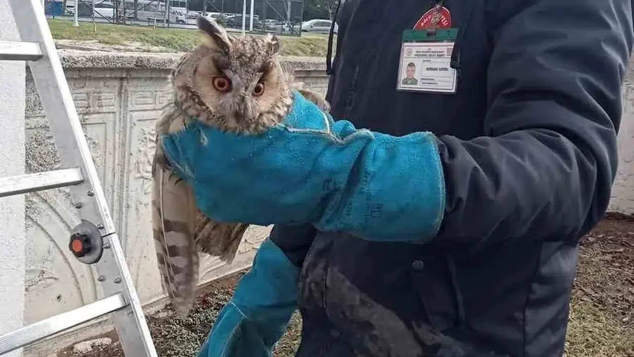 Bolu’da bir dairenin cam balkonunda mahsur kalan baykuş, itfaiye ekipleri tarafından kurtarılarak doğaya salındı.