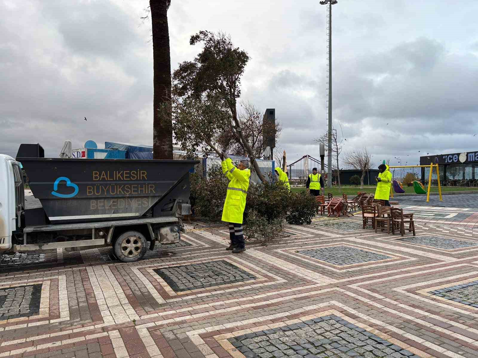 Bandırma’da fırtına sonrası sahilde ağaçların devrildiği ve çevreye zarar verdiği gözlemlenirken, Balıkesir Büyükşehir Belediyesi ekipleri temizlik ve onarım çalışmalarına hızla başladı. Ekipler devrilen ağaçları kaldırarak çevre güvenliğini sağlamak için yoğun çaba sarf etti. Erdek kırsalında ise yol kenarlarına savrulan ağaç dalları ve tabelaların, trafik güvenliğini tehdit ettiği bildirildi.