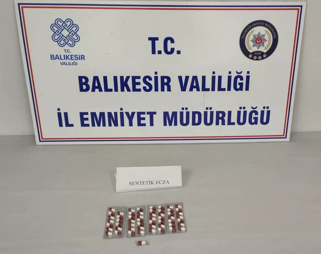 Sındırgı İlçe Emniyet Müdürlüğüne bağlı ekiplerin gece saatlerinde devriye görevini ifa ettikleri sırada, Çamlık mevkiinde 3 şahsın bir arada bulundukları, ekipleri görünce 2 farklı araca yönelerek uzaklaşmaya çalıştıklarının görülmesi üzerine durumdan şüphelenilerek durdurulan araçlar ve 3 kişi üzerinde yapılan kontrollerde; 56 adet sentetik ecza ele geçirildi.