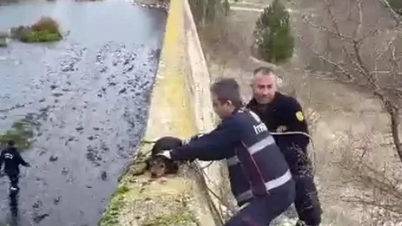 Kütahya’nın Tavşanlı ilçesine bağlı Dudaş köyü yakınlarında Kayaboğazı barajına düşen köpeği gören vatandaşlar, kendi imkanları ile kurtarmaya çalıştı. Çabalarında başarısız olan vatandaşlar durumu itfaiyeye bildirdi. İhbar üzerine bölgeye gelen Tavşanlı Belediyesi Belediyesi İtfaiye Müdürlüğü ekipleri köpeği kurtarmak için çalışma başlattı.