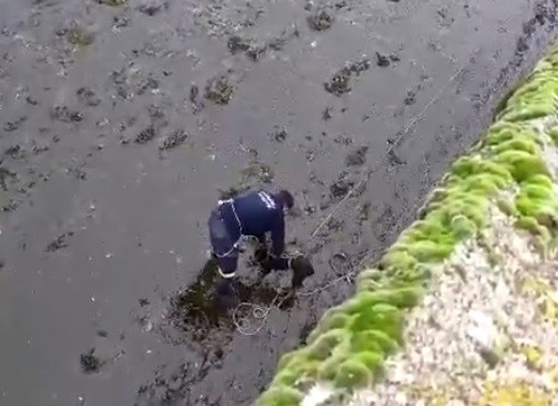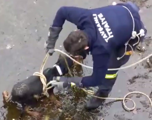 İtfaiye erleri avcı köpeğini halat bağlayarak bulunduğu yerden çıkardı. Kurtarılan köpek daha sonra doğal yaşam alanına salındı.