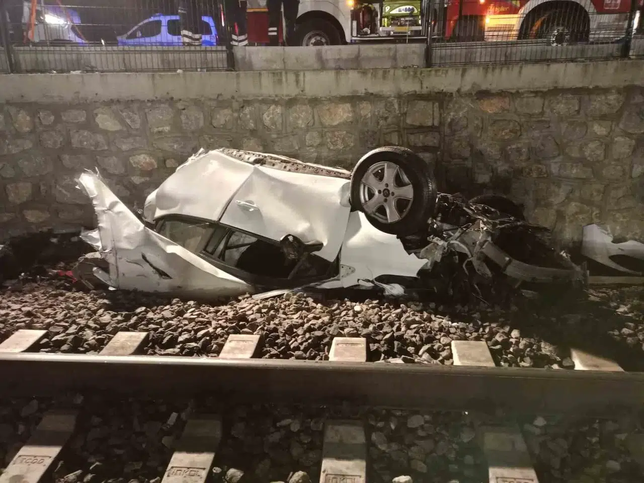 Ankara’da kontrolden çıkan otomobil köprü bariyerine çarpıp ikiye bölünmesinin ardından tren rayına düştü. Feci kazada araç içerisinde bulunan 3 kişiden biri hayatını kaybederken 2 kişi ağır yaralandı.