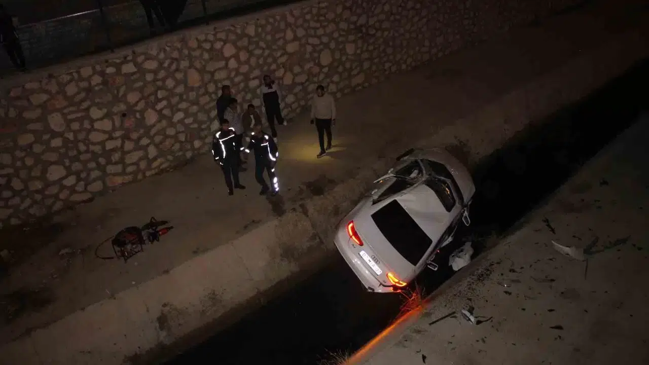 Kafa Kafaya Çarpışan Otomobillerden Biri 7 Metre Derinliğindeki Kanala Uçtu: 2 Yaralı