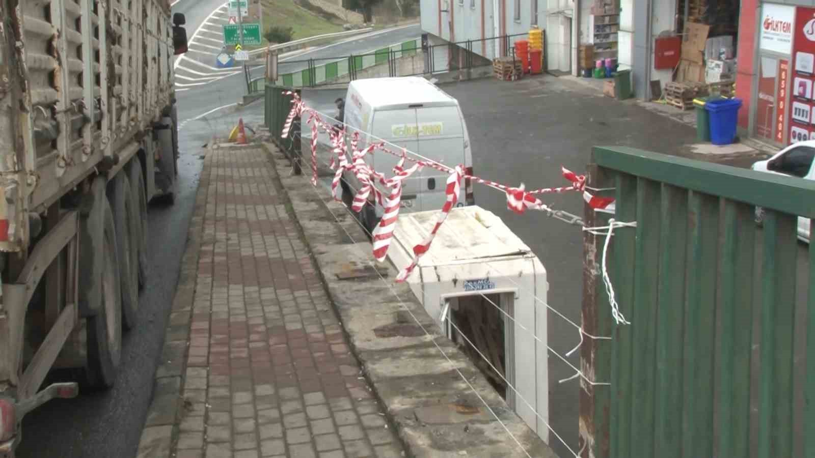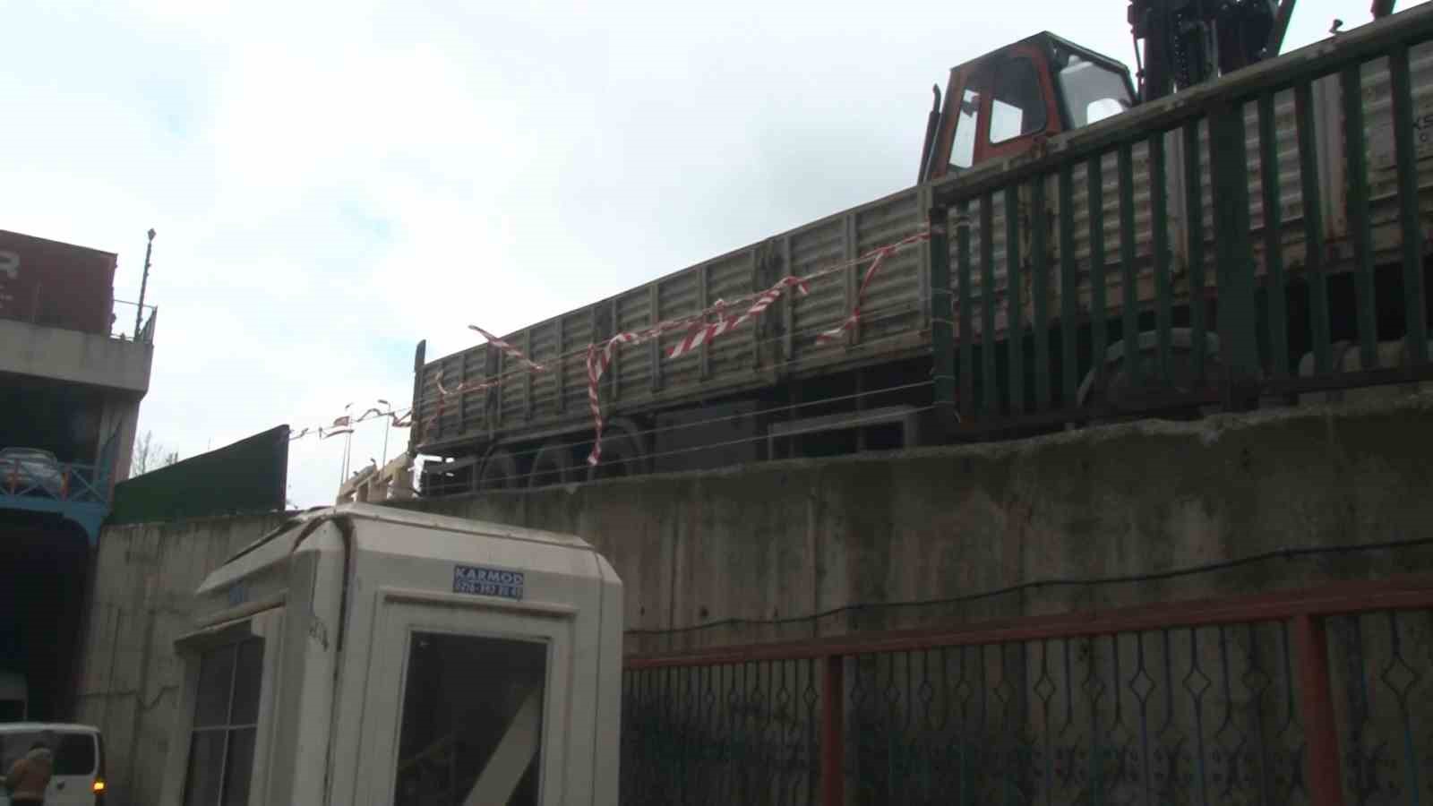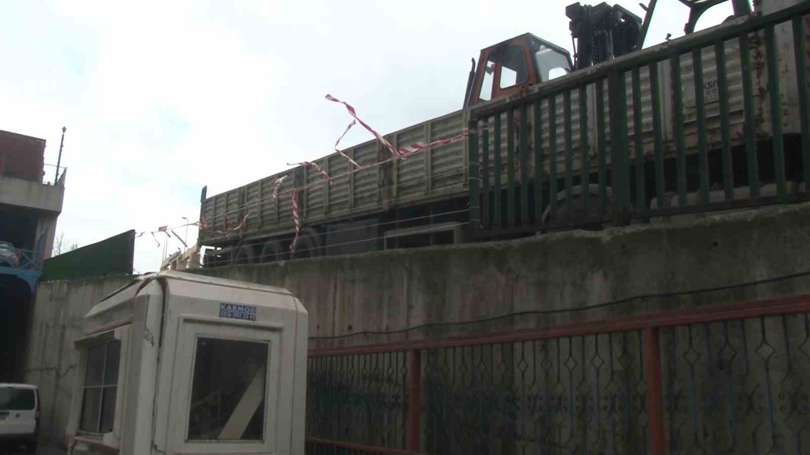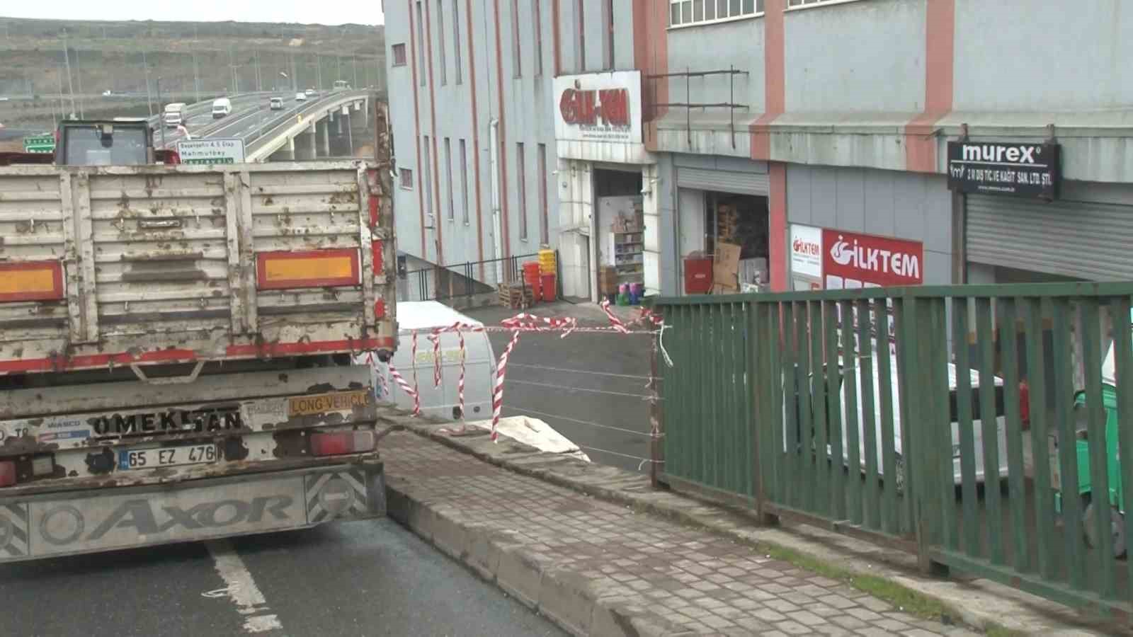 Başakşehir’de sürücüsünün direksiyon hakimiyetini kaybettiği bir tır, bariyerleri aşarak iş yerinin bahçesine düştü. Hafta sonu yaşanan kazada işçilerin izinli olması faciayı önledi. Kaza anı güvenlik kamerası tarafından görüntülendi.