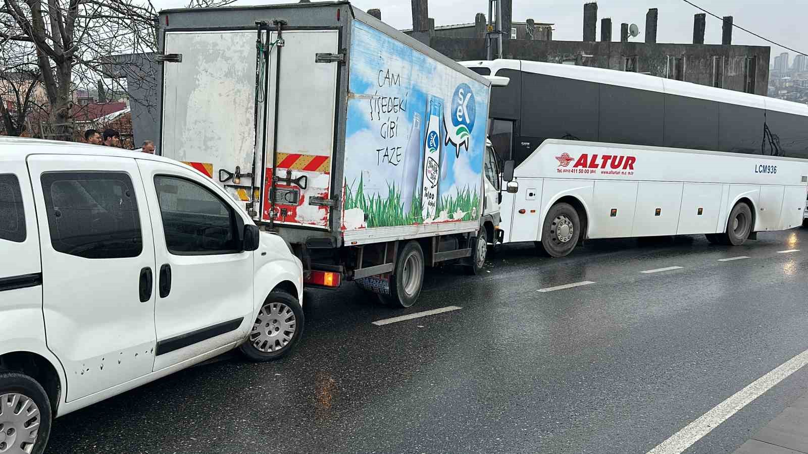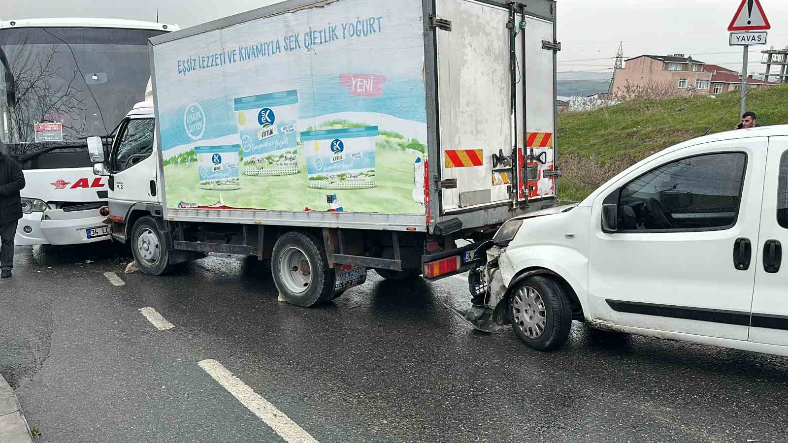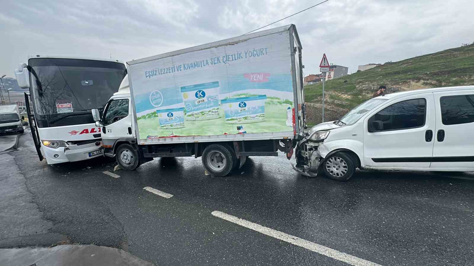 Başakşehir’de yağışlı hava nedeniyle aralarında Türk Hava Yolları’na ait personelleri taşıyan servis aracının da bulunduğu 3 araç kazaya karıştı. Kazada 1 kişi yaralanırken kaza sonrasında kapanan yolda İETT otobüsleri geri çıkarak güzergah değiştirdi.