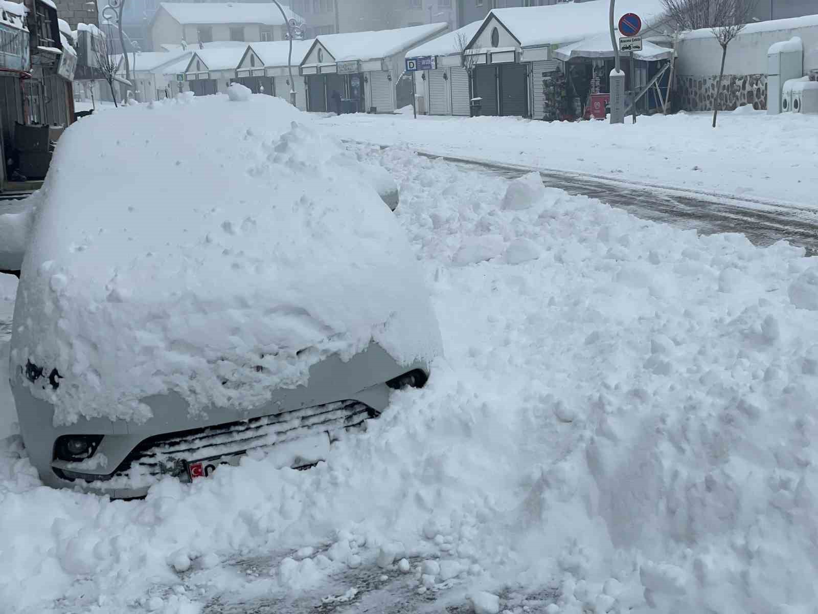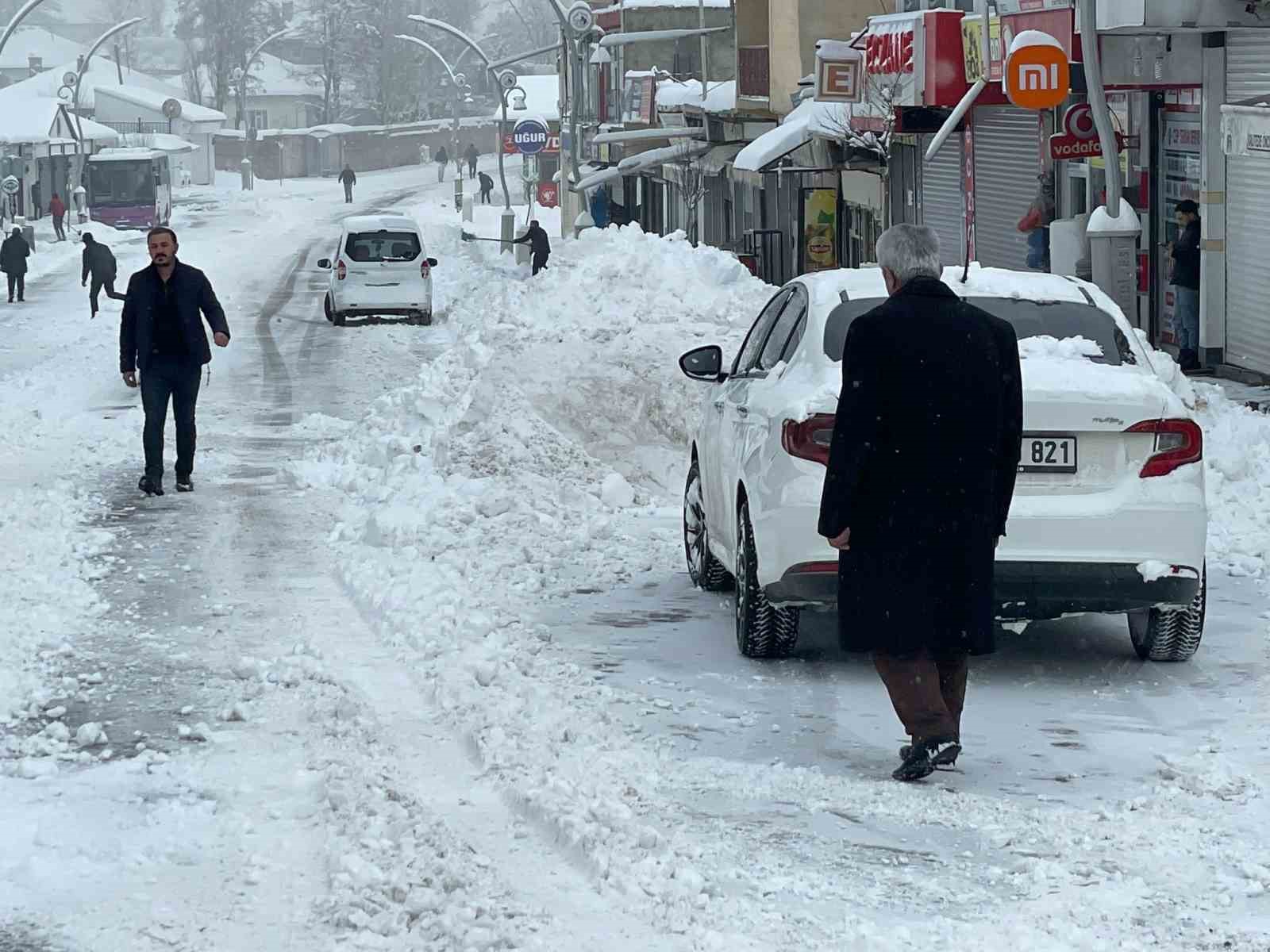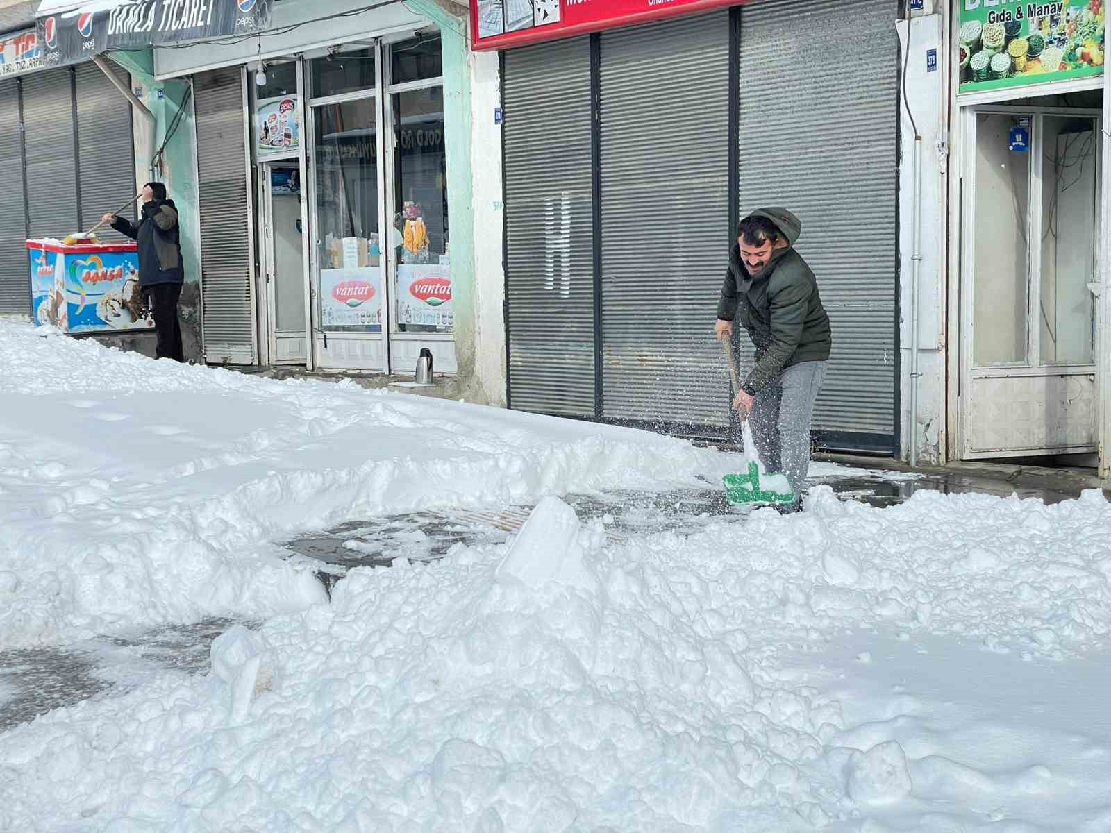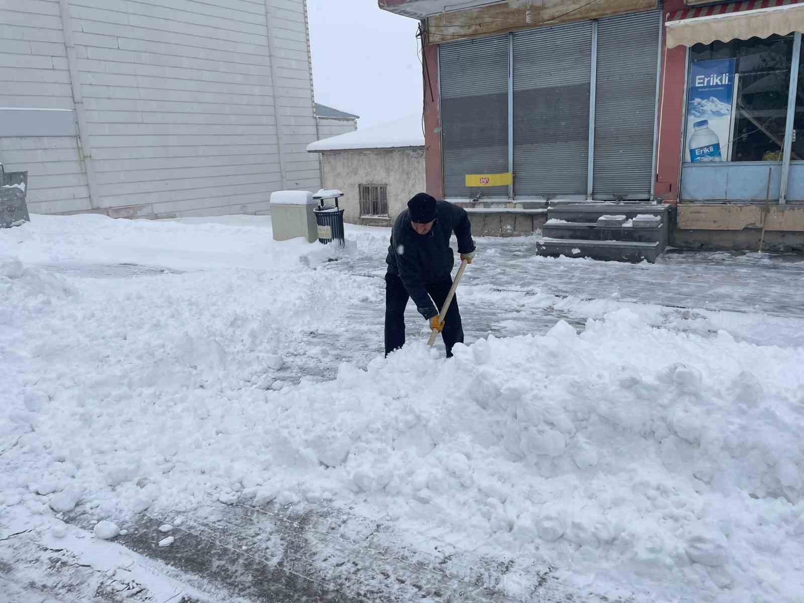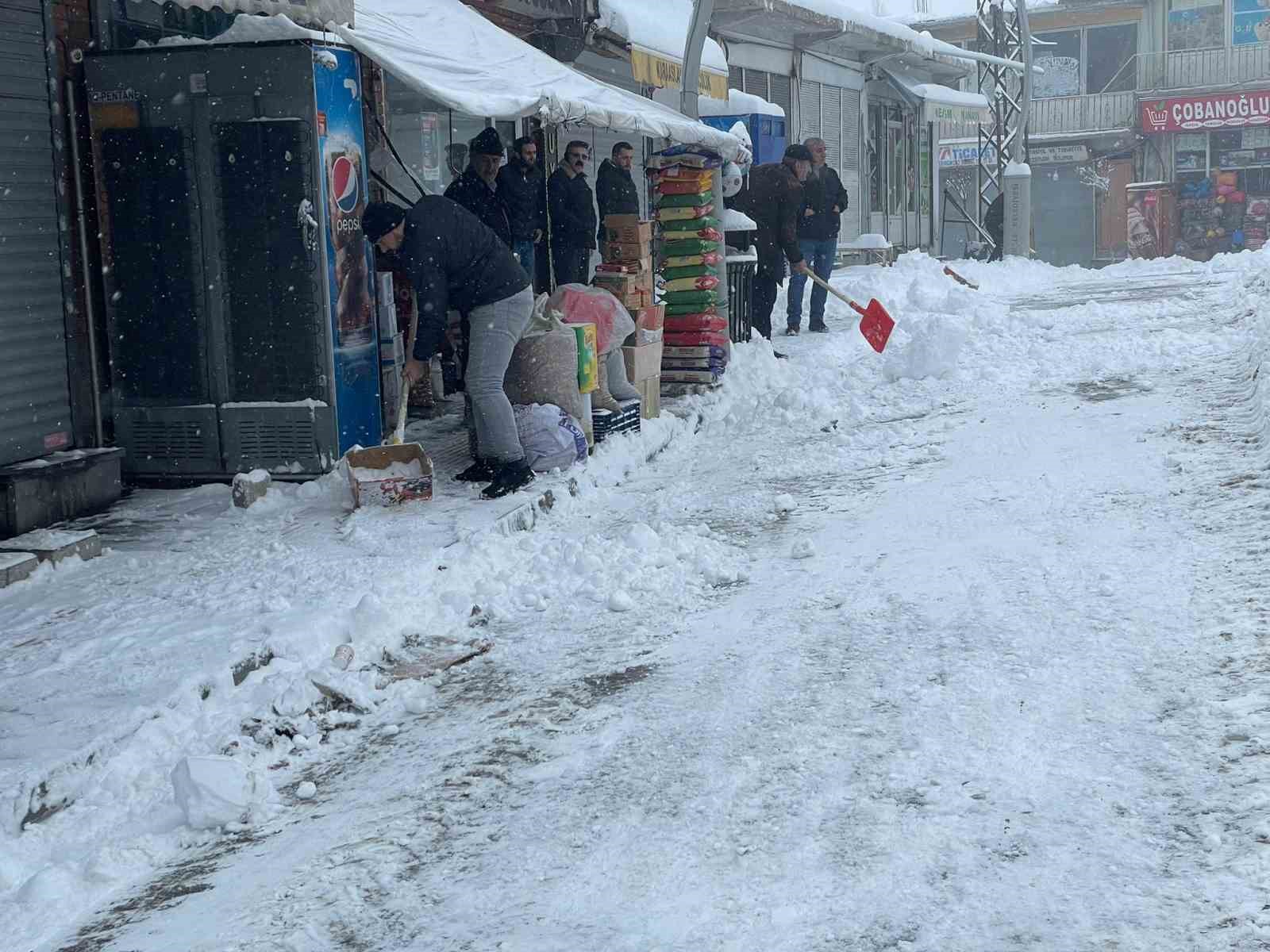 Güne karla uyanan esnaf ise iş yerlerine girebilmek için kar yığınlarını kürekle temizledi.