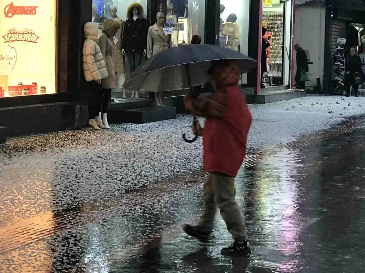 Kent merkezinde etkili olan dolu yağışı yolları beyaza bürüdü. Gülistan Caddesi’nde alışveriş yaptıkları sırada sağanak ve doluya hazırlıksız yakalanan vatandaşlar zor anlar yaşadı. Dolu nedeniyle yolda yürümekte güçlük çeken bazı vatandaşlar düşme tehlikesi geçirdi.
