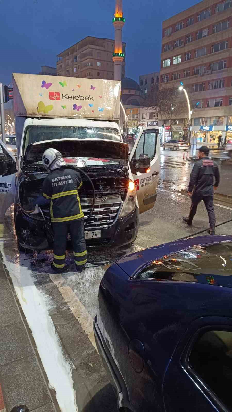 Batman’da park halindeki kamyonet alev alev yandı.