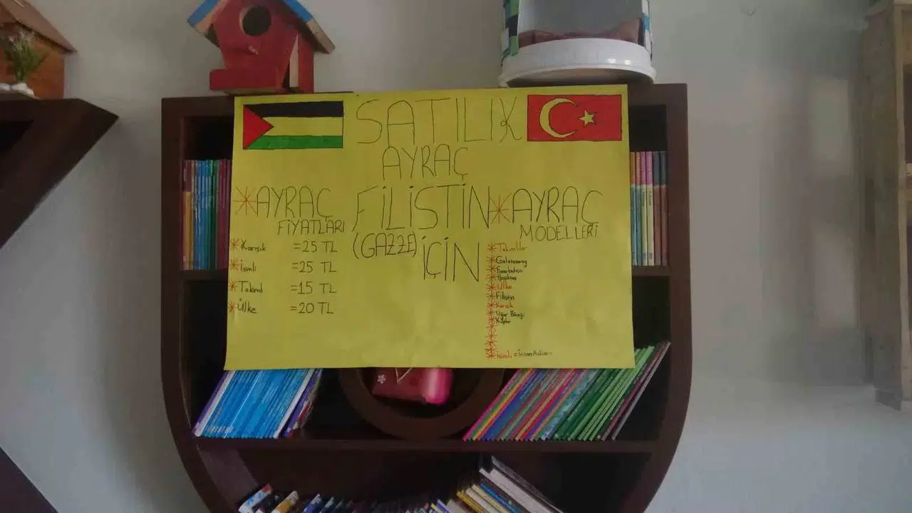 Filistin’de zulme uğrayan akranlarını unutmadığını söyleyen öğrencilerden Muhammed Miran Ekmen, okullarında kitap okuma projesi olduğunu ve bu proje doğrultusunda yaptıkları kitap ayracı çeşitlerini satarak gelen bağışları Gazze’deki çocuklara bağışlayacaklarını söyledi.
