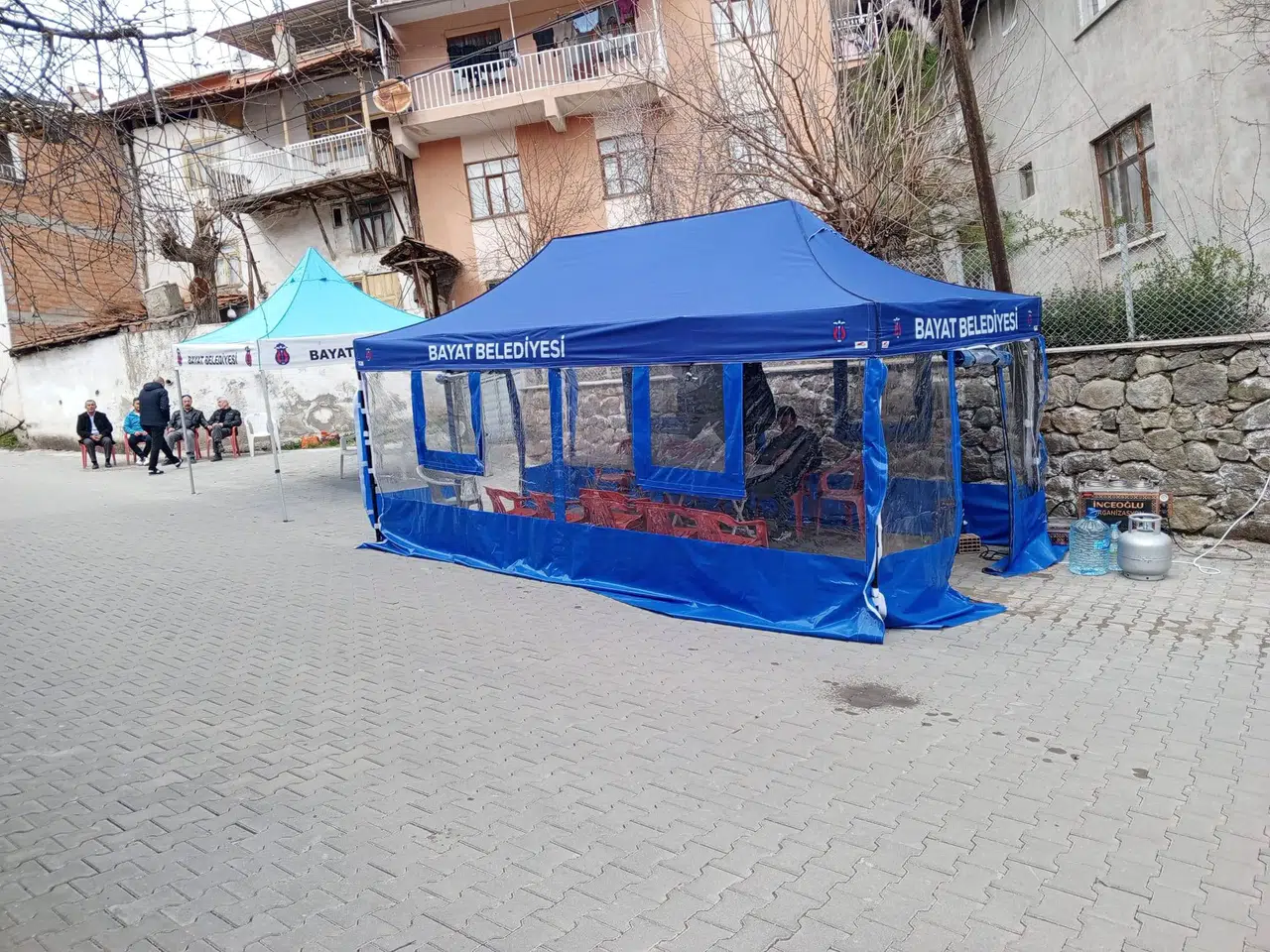 Çorum'un Bayat ilçesinde belediye tarafından yürütülen ücretsiz cenaze hizmetleri kapsamında vatandaşların acılı günlerinde daha rahat bir ortam bulabilmesi amacıyla aydınlatma ve ısıtma sistemli kapalı taziye çadırları hizmete sunuldu. Bayat Belediyesi ilçe halkının acısını paylaşarak hayatın her anında vatandaşların yanında olmaya devam ediyor.