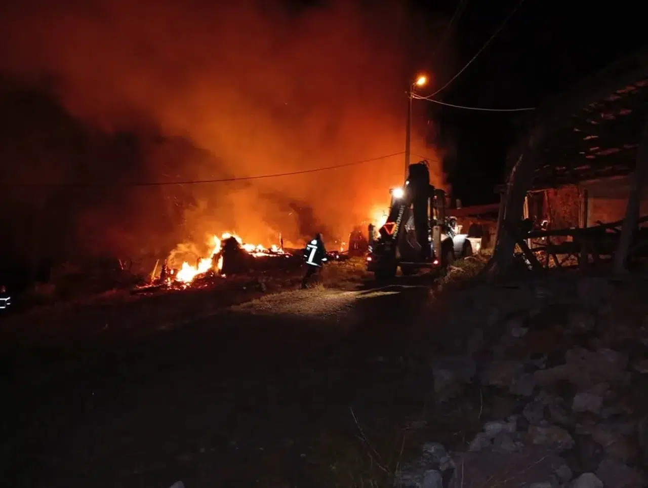 Olay yerine gelen ekiplerin müdahalesiyle yangın kısa sürede kontrol altına alınarak söndürüldü. Yangında ev, samanlık ve saman balyaları küle döndü.