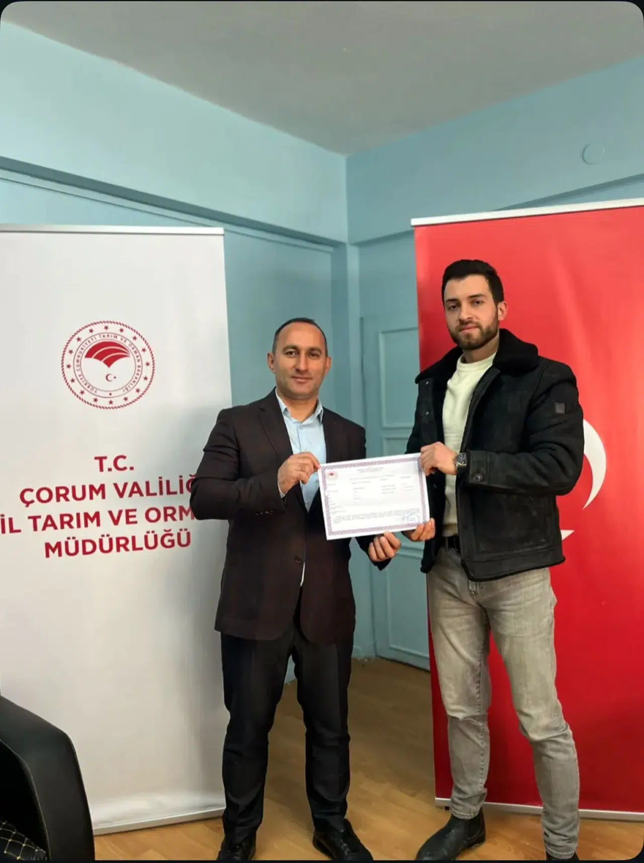 Bayat İlçe Tarım ve Orman Müdürlüğü tarafından hastalıklardan ari işletmelerin yaygınlaştırılması amacıyla yürütülen çalışmalar kapsamında önemli bir belge teslimi gerçekleştirildi. İlçe Müdürü Abdullah İpek tarafından üretici Ahmet Turan Akpınar’ın işletmesinde yapılan incelemeler sonucunda, tesisin ari işletme şartlarını sağladığı tespit edildi. Gerçekleştirilen değerlendirmelerin ardından üreticiye arilik sertifikası takdim edildi.