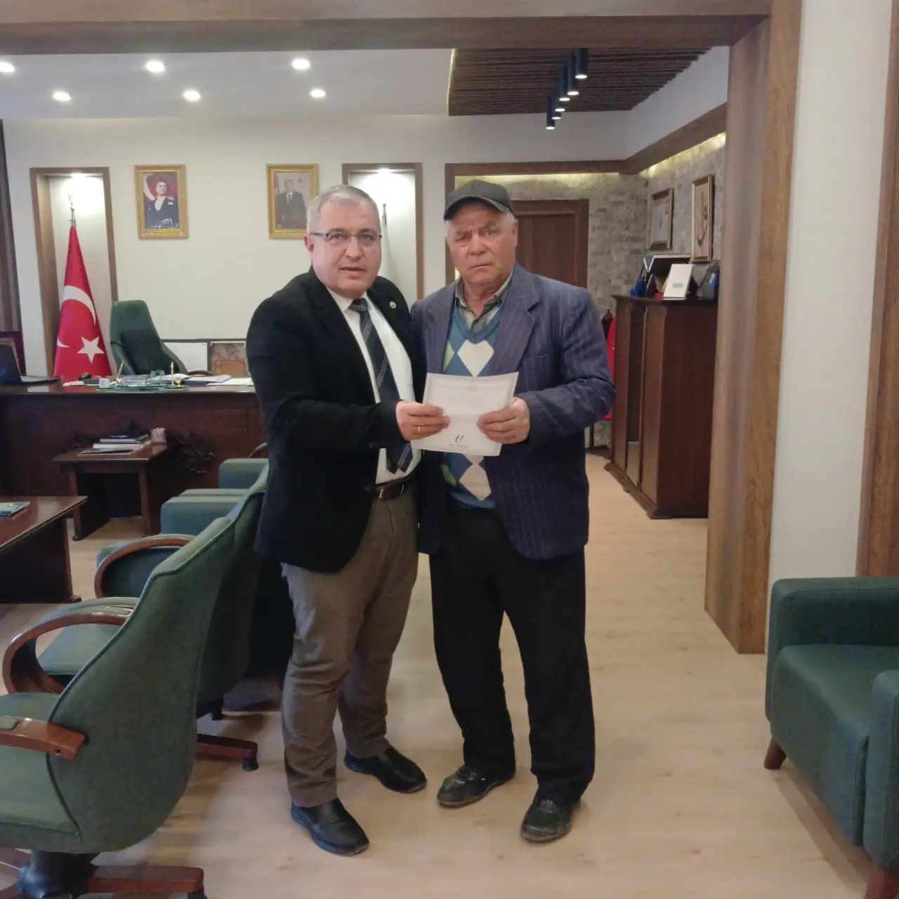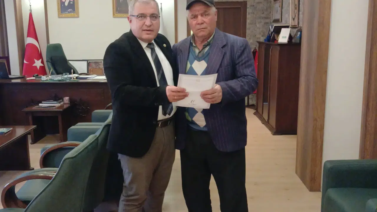 Bayat Belediyesi uzun süredir beklenen tapu işlemlerini tamamlayarak hak sahiplerine teslim etmeye devam ediyor. Bu kapsamda resmi işlemleri başarıyla sonuçlanan Adem Yaman isimli vatandaş tapusunu Belediye Başkanı Ahmet Bahadır Ünlü'nün elinden aldı.