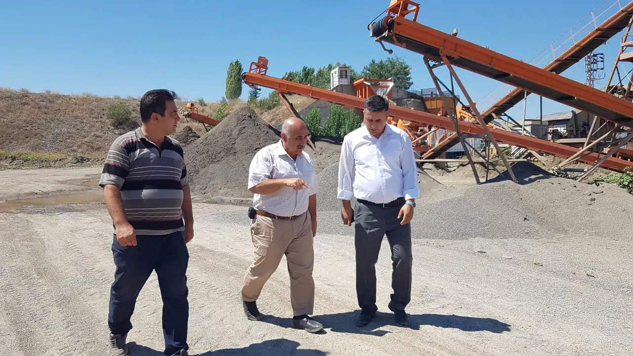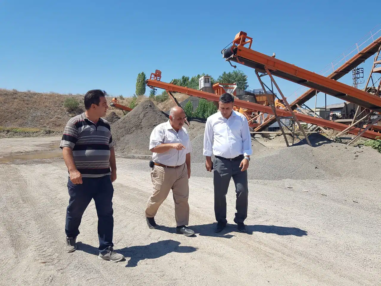 Belediye Başkanı Ekrem Ünlü, kum ocağı tesislerini ziyaret ederek, çalışmalar hakkında bilgi aldı.