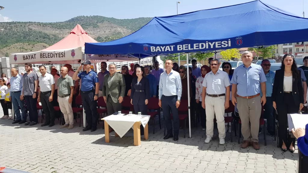 Ardından Bayat Kaymakamı Seher Söyler ve Belediye Başkanı Ahmet Bahadır Ünlü ile diğer katılımcılar tarafından kurdele kesilerek serginin açılışı yapıldı.