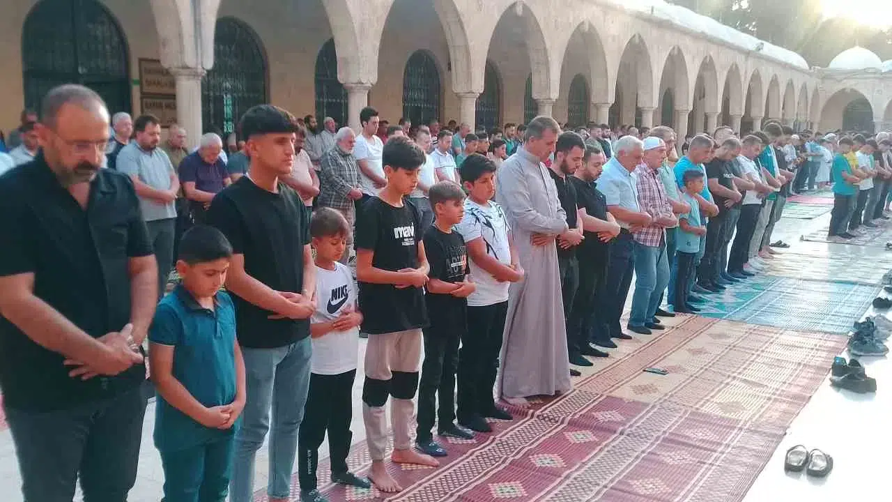 Şanlıurfa’da binlerce kişi Kurban Bayramı namazı için Balıklıgöl yerleşkesindeki Halil-ül Rahman Camii’nde bir araya geldi. Sabahın ilk ışıklarıyla Balıklıgöl’e giden vatandaşlar, birlikte saf tutup namaz kıldı. Caminin içerisine sığmayan kalabalık, avluya taştı.