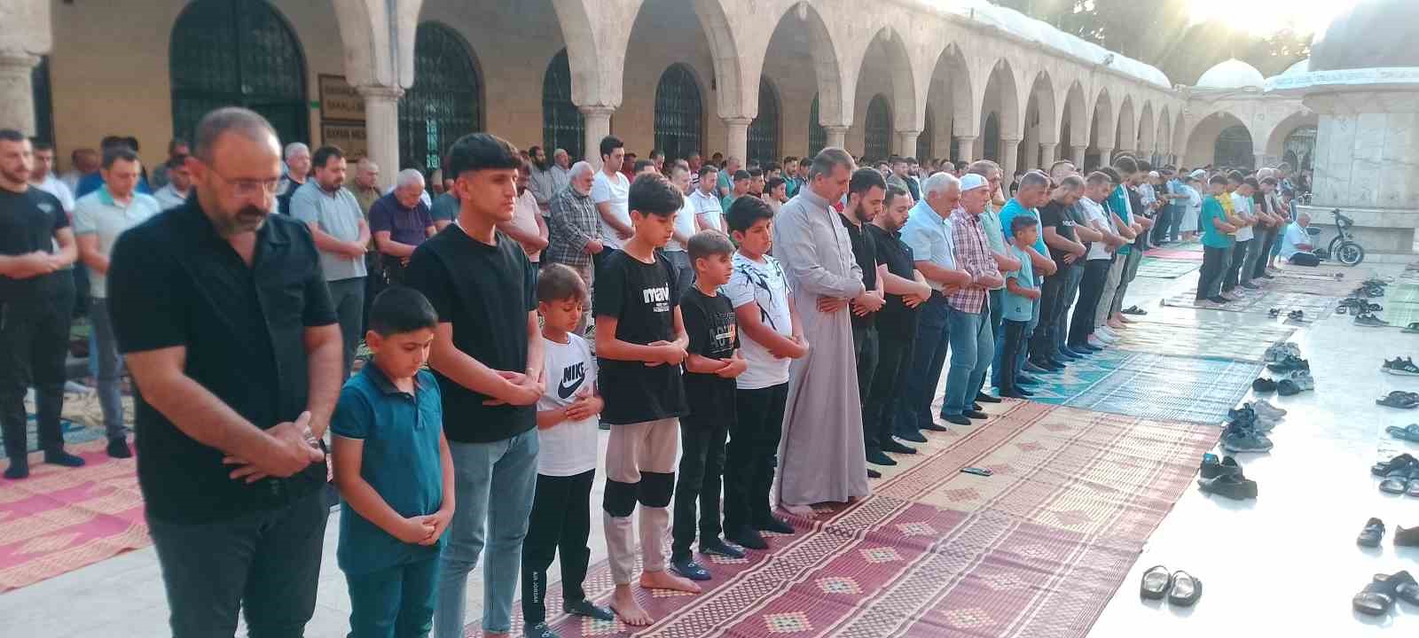Şanlıurfa’da bayram namazı için bir araya gelen binlerce kişi, Balıklıgöl’deki Halil-ül Rahman Camii’ne sığmadı.