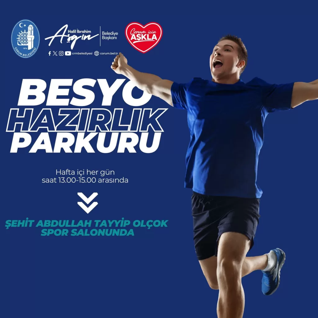 Çorum Belediyesinin sosyal medya hesabından paylaşımda saat vatandaşların parkuru 13.00 ile 15.00 saatleri arasında kullanabileceği bildirildi. Açıklamada, “BESYO Parkurumuz hizmetinizde. Ücretsiz kendini test et. Şehit Abdullah Tayyip Olçok Spor Salonu’nda 12 Ağustos Pazartesi gününden itibaren hafta içi her gün saat 13.00 - 15.00 arası” denildi.