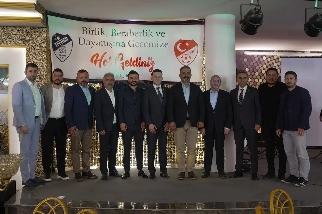 Çorum Belediyesinden yapılan açıklamada “Türkiye Faal Futbol Hakemleri ve Gözlemcileri Derneği Çorum Şubemizin düzenlediği, “Birlik, Beraberlik ve Dayanışma Gecesi”nde kıymetli hakemlerimizle bir araya geldik. Göreve yeni başlayan hakemlerimizi tebrik ediyor, şehrimiz futboluna katkı sağlayan hakemlerimize de teşekkür ediyoruz” denildi.