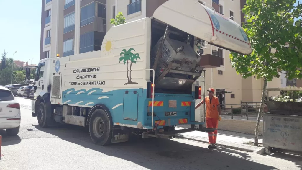 Çorum Belediyesinden yapılan açıklamada “Kurban Bayramı’nda çöp konteynerlerinde kötü koku ve haşere oluşumuna karşı yıkama ve dezenfekte çalışmalarımız devam ediyor. Lütfen kurban atıklarını açık bir şekide çöp konteynerine atmayalım” denildi.