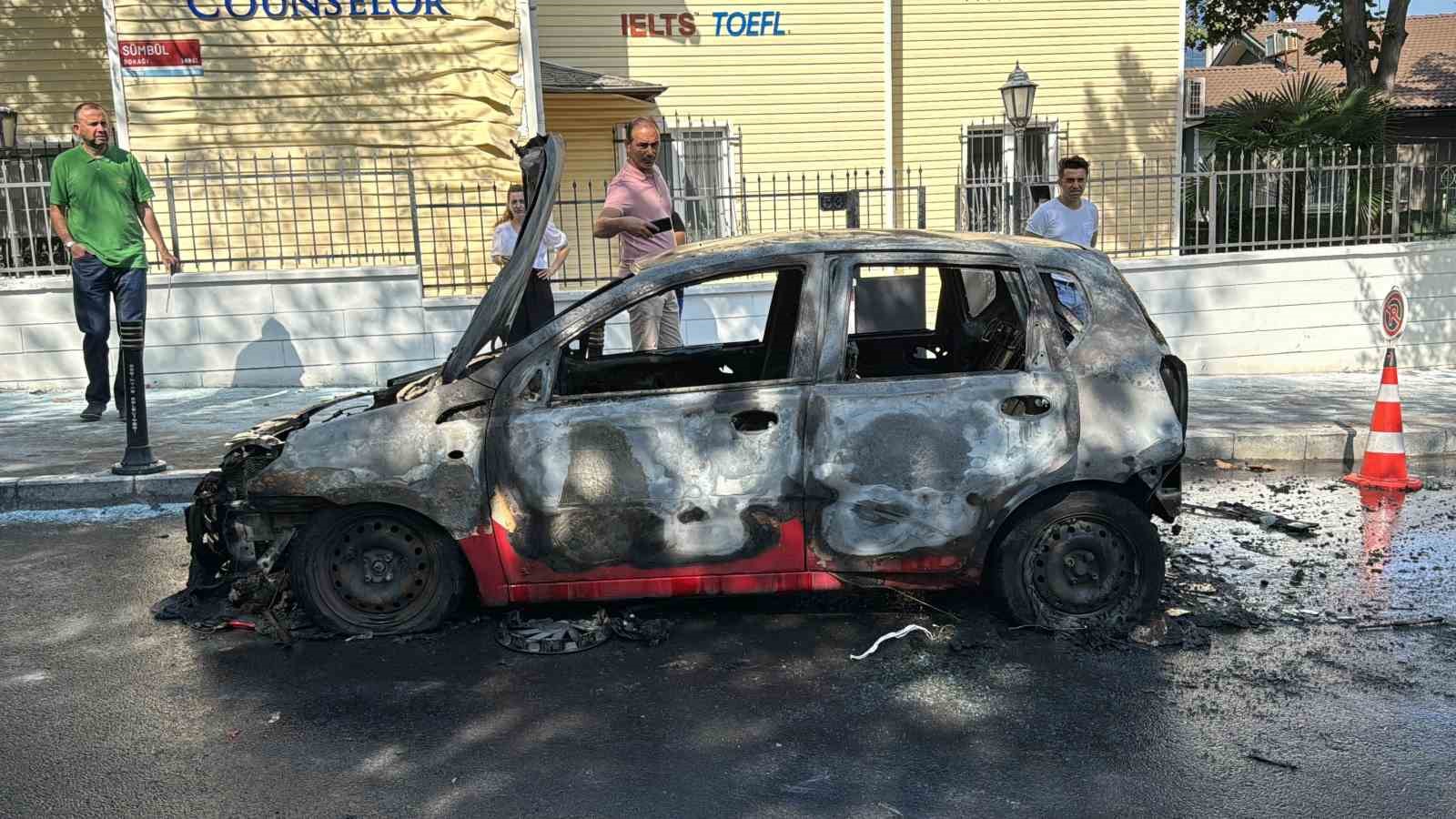 Beşiktaş’ta Alev Alev Yanan Araç Küle Döndü