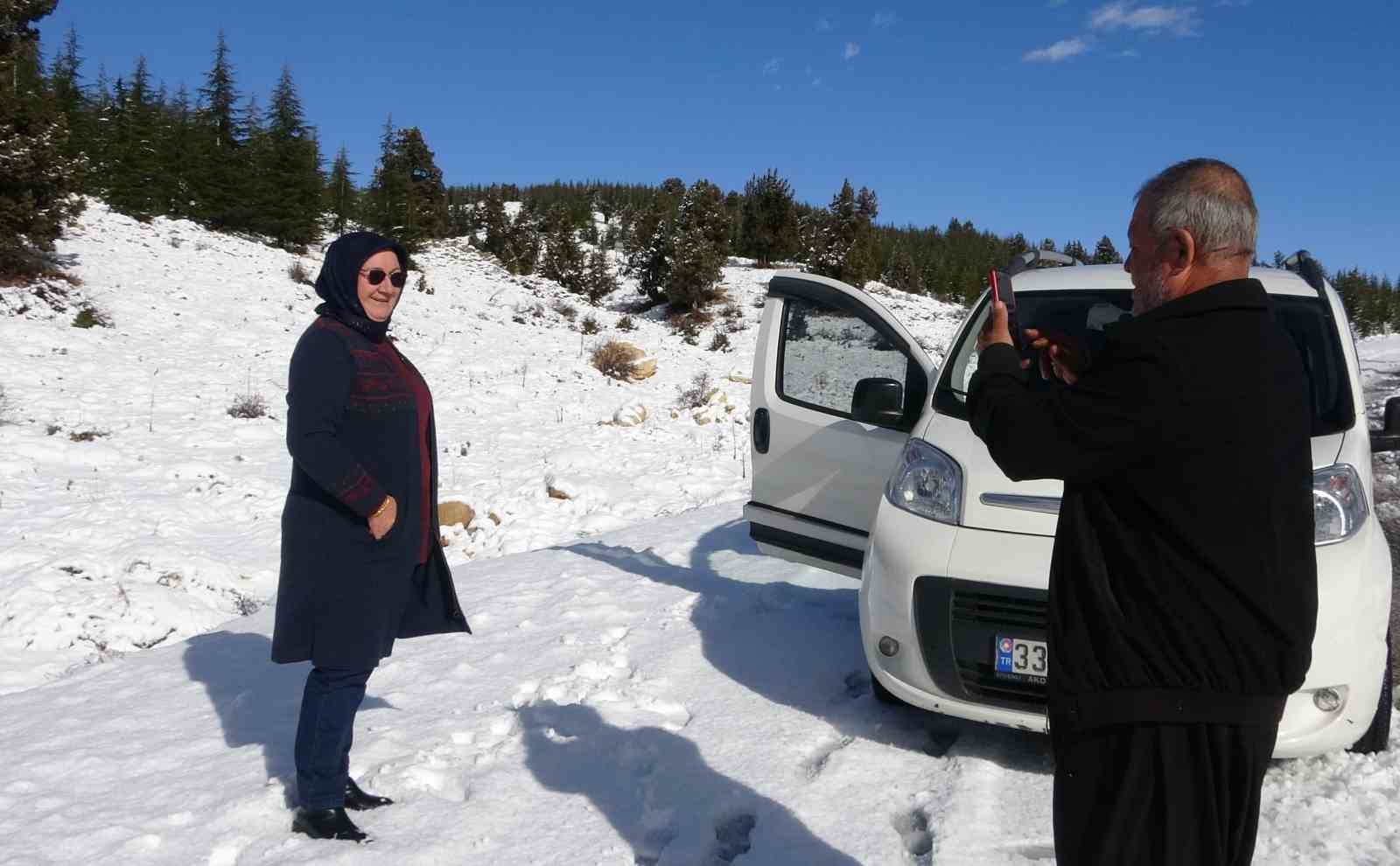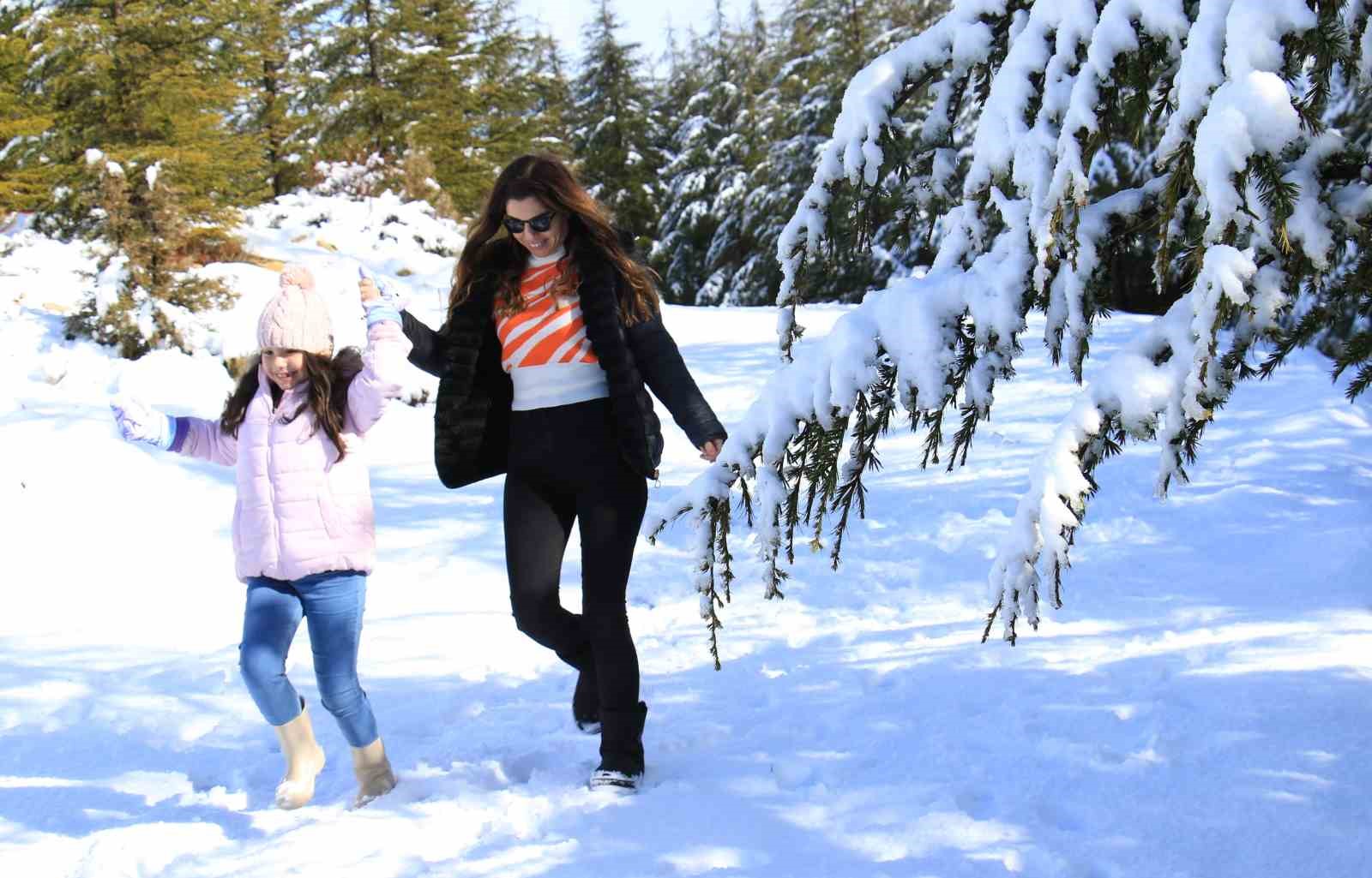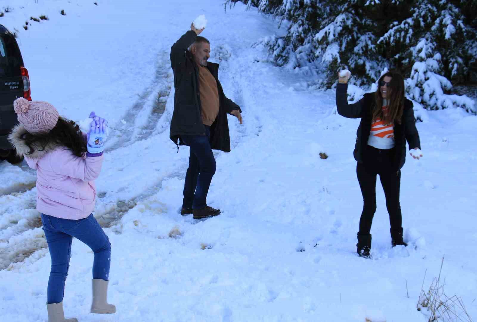 Yaz şehri olarak bilinen Mersin’in yüksek kesimlerinde etkili olan kar yağışı, Toroslar başta olmak üzere yüksek kesimlerde kartpostallık görüntüler ortaya çıkardı. Bazı aileler çocukları ile gelip kartopu oynarken, bazı çiftler de fotoğraf çektirmeyi tercih etti.