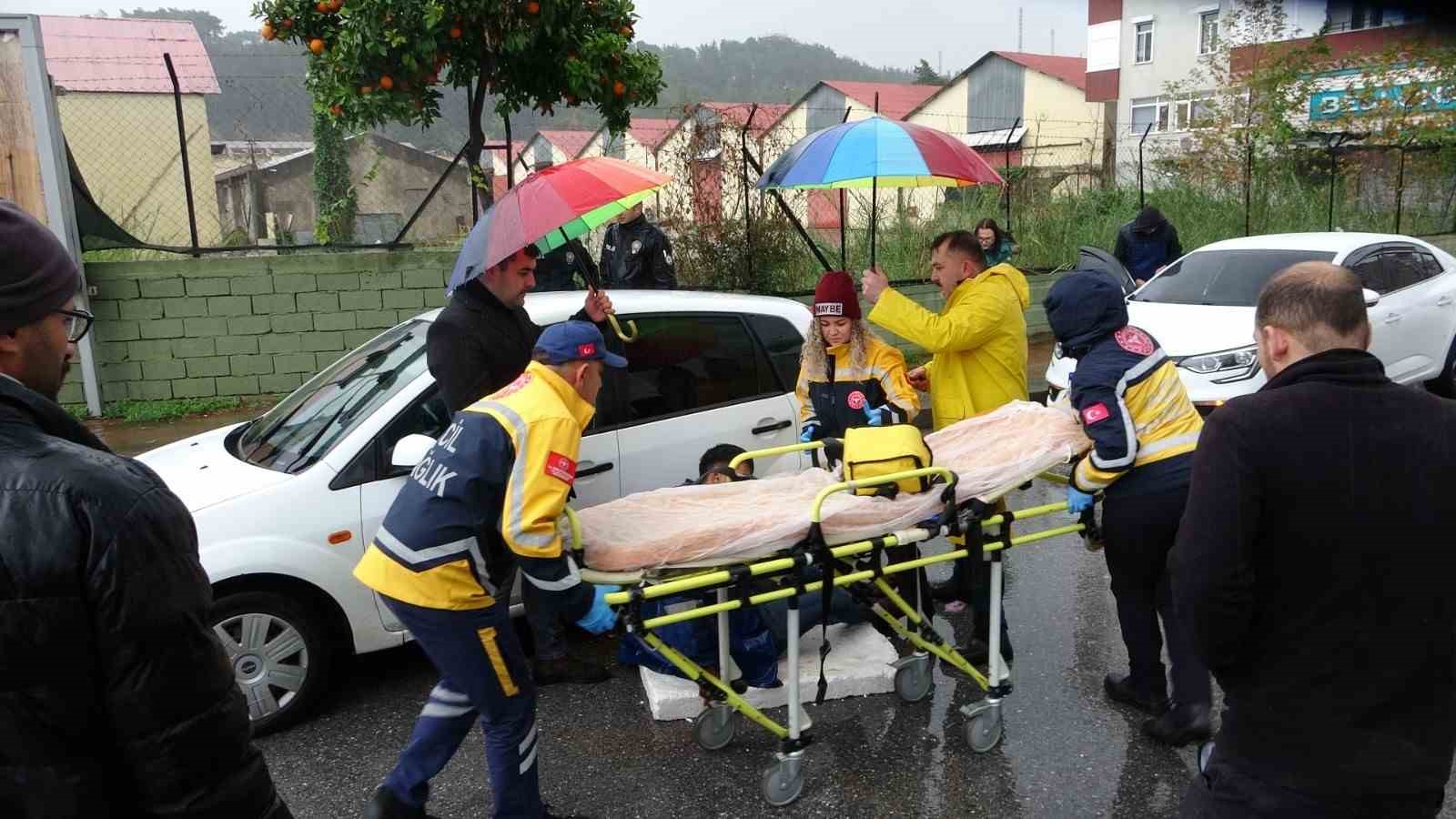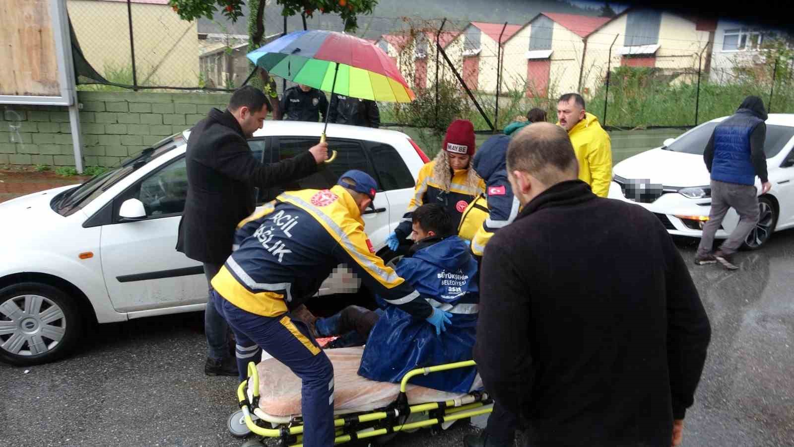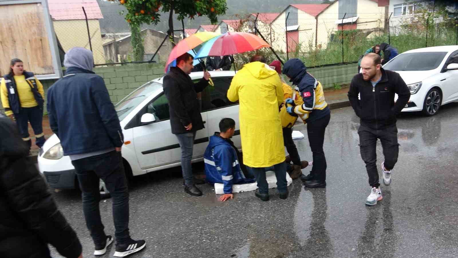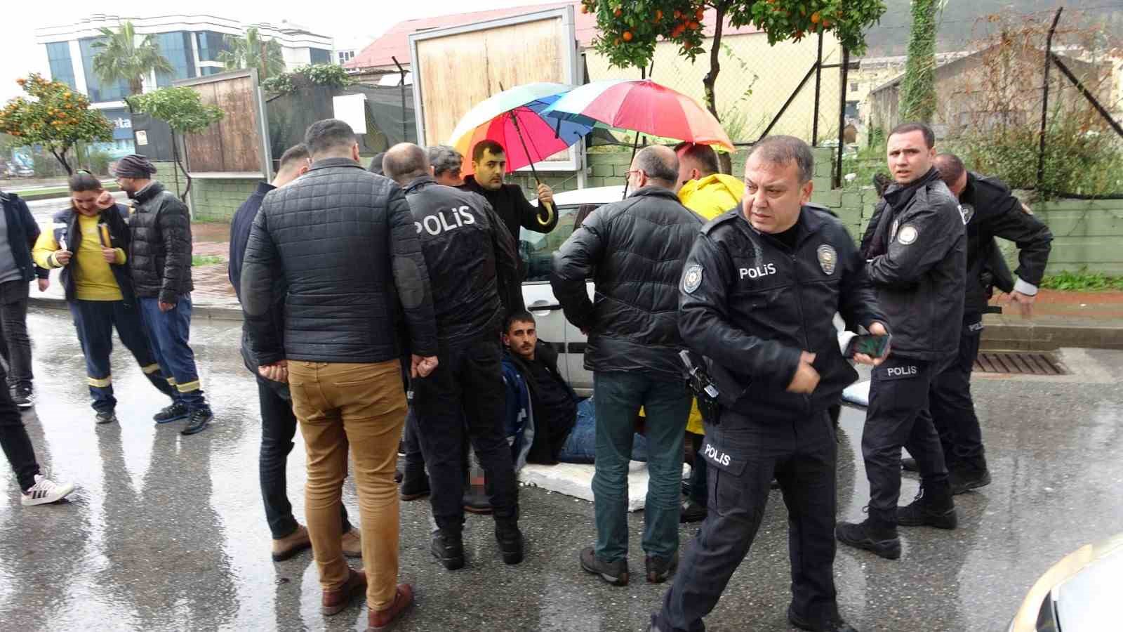 Antalya’nın Manavgat ilçesinde kırmızı ışıkta beklediği sırada otomobilden indirilen belediye personeli önce darp edildi ardından baldırınca bıçaklandı. Bıçaklayan şüpheli aracıyla olay yerinden ayrılırken yol ortasında yerde yatan yaralının yardımına koşan vatandaşlar, şemsiye ve köpük strafor ile yağmurdan korudular. Olaydan bir süre sonra polis karakoluna giderek teslim olan şüphelinin ise kimliği ve olayın sebebi hakkında bilgi verilmedi.