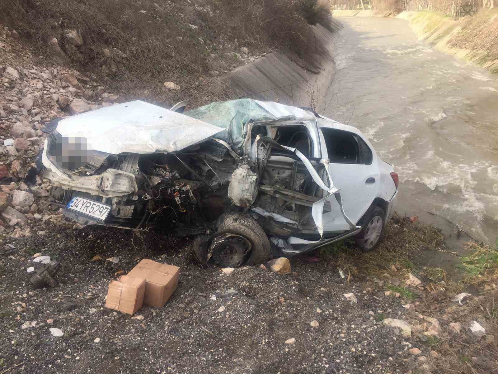 Bilecik’te sürücüsünün kontrolünü kaybeden araç dereye yatağına uçarken araçta bulunan 3 kişi yaralandı.