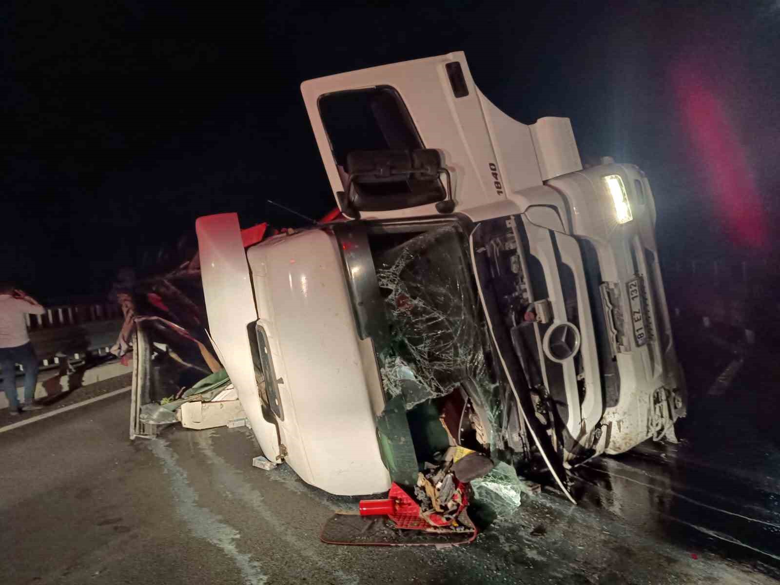 Bingöl’de Kontrolden Çıkan Tır Köprüde Yan Yattı