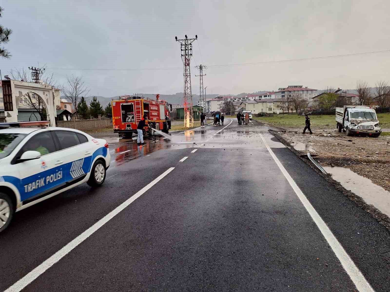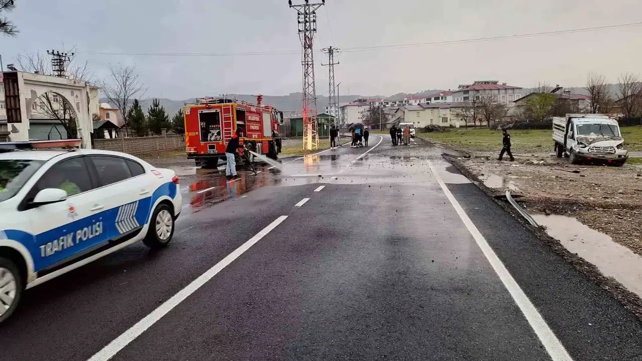 Bingöl’de kuvvetli sağanak yağış nedeniyle kayganlaşan yolda kamyonet kontrolden çıkarak kaza yaptı.