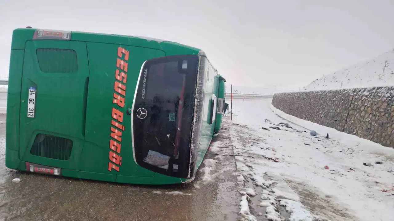 Bingöl’ün Karlıova ilçesinde kar yağışı ve buzlanma nedeniyle devrilen yolcu otobüsündeki 2 kişi öldü, 16 kişi yaralandı.