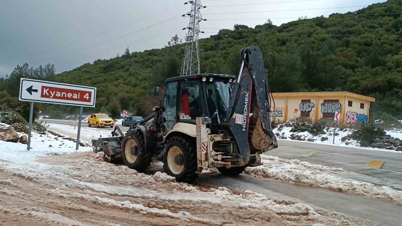 Kaş-Antalya Karayolu Sarılar Mahallesi mevkiinde bir anda yağan şiddetli dolu, karayolunu beyaza bürüdü. Trafikte aksamaların yaşandığı yolu açmak için belediye ekipleri çalışma başlattı.