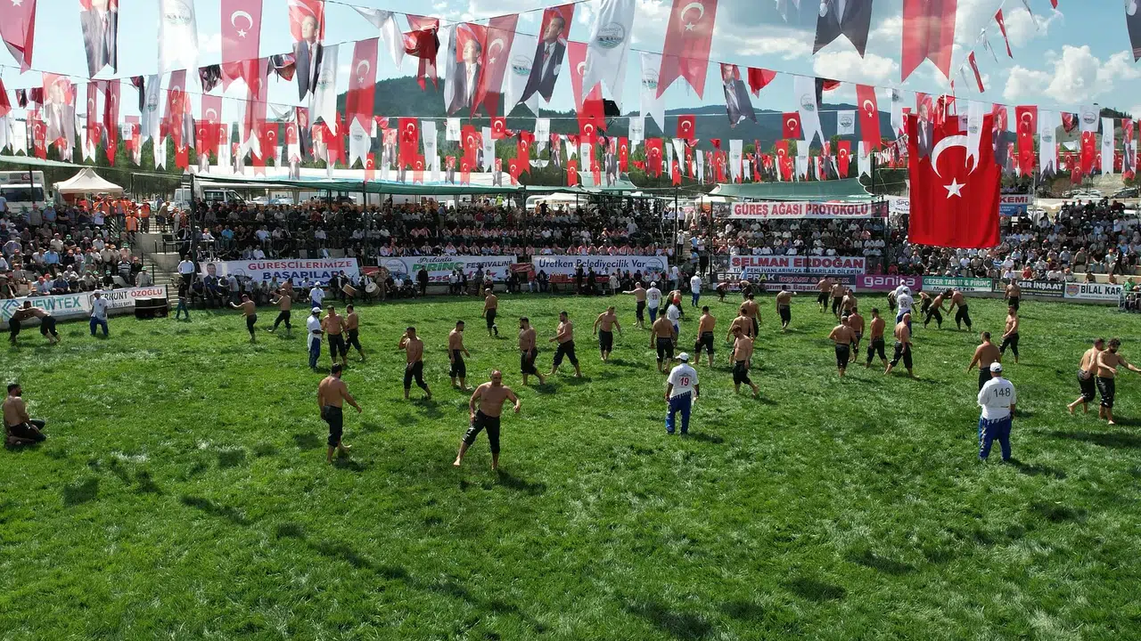 Binlerce güreş severin katılımı ile yapılan güreşlere 32 başpehlivan ve 700’den fazla pehlivan katıldı.