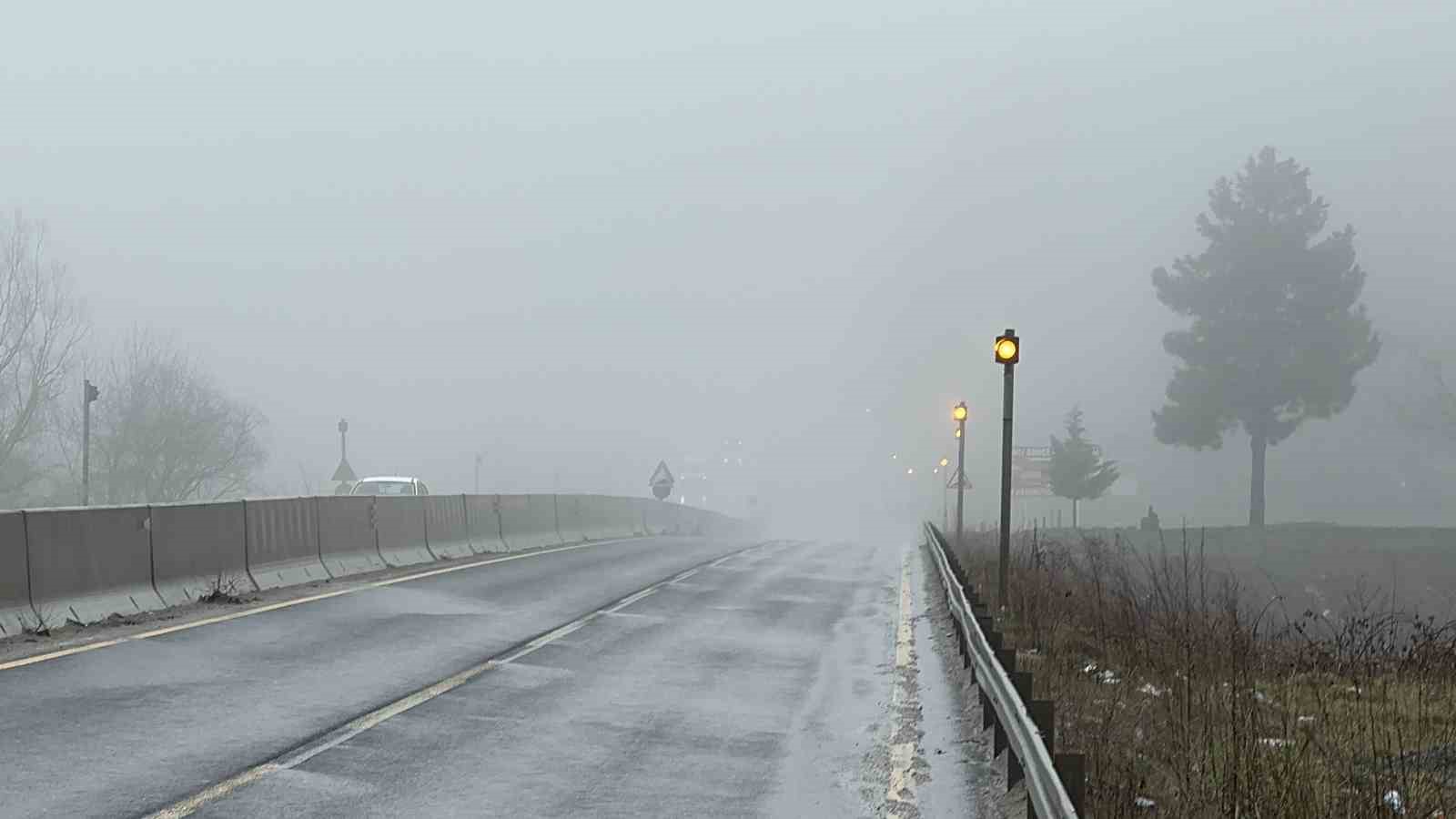 Bolu Dağı’nın D-100 karayolu geçişinde aralıklarla yağmur etkili olurken, sis nedeniyle de görüş mesafesi yaklaşık 30 metreye kadar düştü.