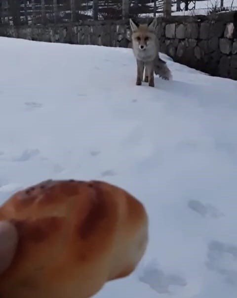 Pülümür’de çetin geçen kış ayı nedeni ile yiyecek bulmakta zorlanan yaban hayvanları sık sık şehir merkezine inmeye başladı. Bu hayvanların sonuncusu ise bir tilki oldu. Kar altında yiyecek arayan bir tilki kent merkezine kadar geldi. Tilkiyi fark eden Nazim Tanık isimli vatandaş, hemen eve gidip ekmek alıp hayvanın yanına geldi. ‘Boncuğum’ diye seslendiği hayvanı yanına çağıran Tanık, aynı zamanda cep telefonu ile bu anları da kaydetti. Ürkek davranan tilki, bir süre sonra Tanık’ın elinden ekmeği alıp uzaklaştı.