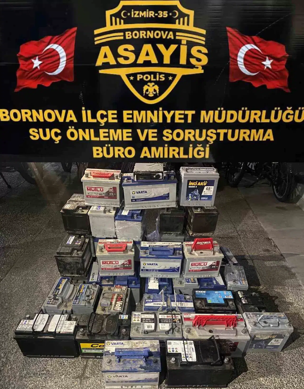 İzmir’in Bornova ilçesinde artan akü hırsızlığı ile ilgili çalışma gerçekleştiren polis, hırsızları kıskıvrak yakaladı. Hırsızların aküyü sattığı kişinin evinde arama gerçekleştiren ekipler, 42 adet çalıntı akü ele geçirdi.
