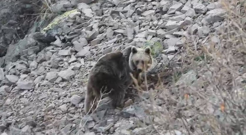 Erzurum’un İspir ilçesinde kış uykusundan uyanan bozayılar yiyecek için araziye çıktı. Yedigöl Mahallesi yaylasında ortaya çıkan ayı, doğasever Bülent Erkan tarafından görüntülendi.