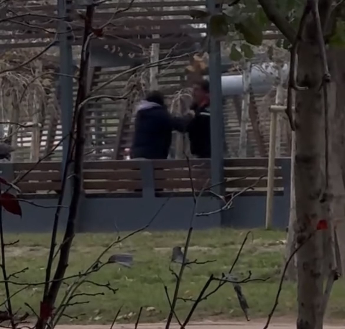 Bursa’da bir kadın parkta tartıştığı erkek arkadaşına defalarca vurdu. O anlar kameraya yansırken, tokat giyen genç, kız arkadaşını sakinleştirmeye çalıştı.