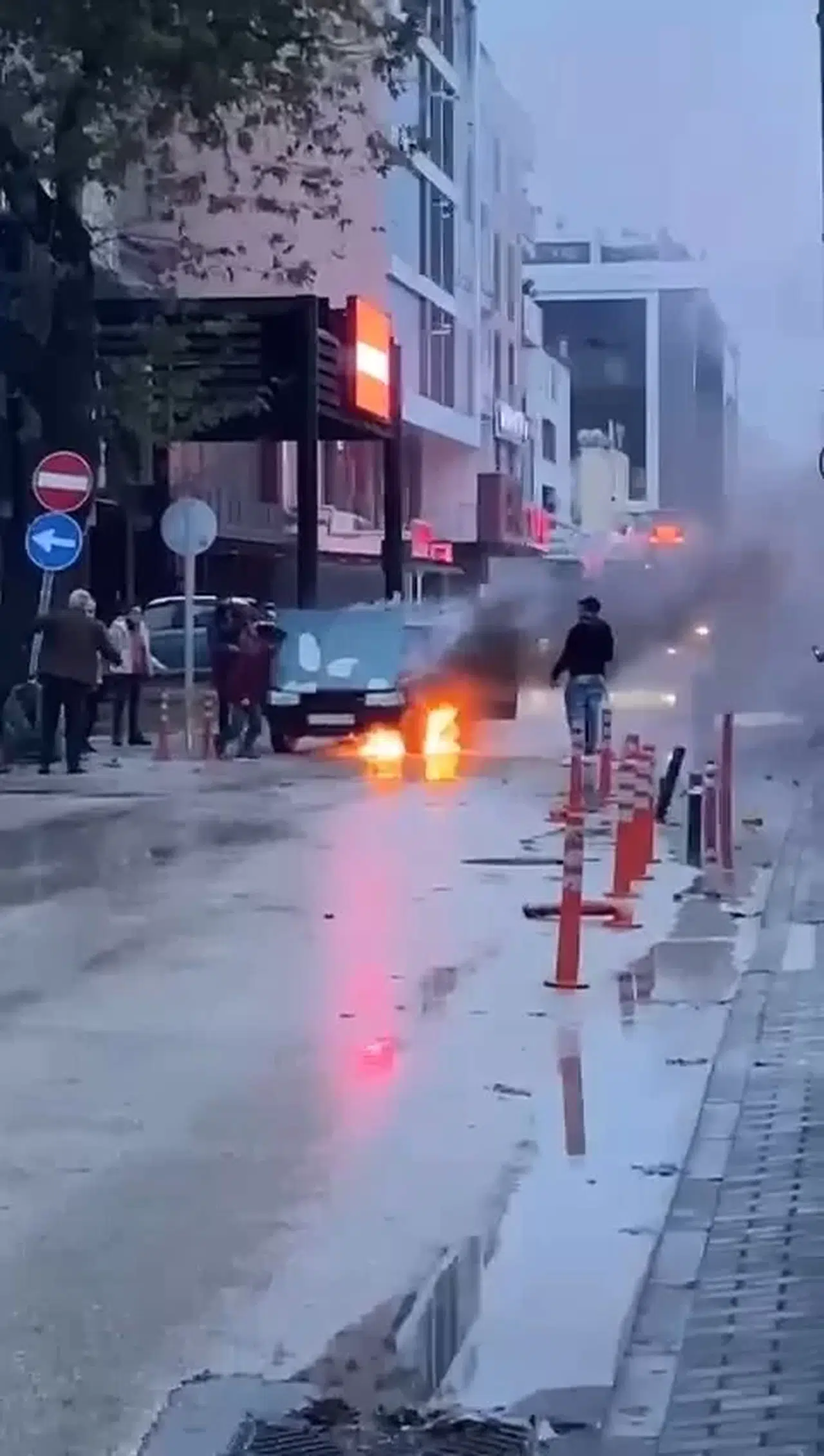 Bursa’da seyir halindeki otomobilinden çıkan dumanları gören sürücü aracını sağa çekti. Otomobil, bir süre sonra alev topuna döndü. O anlar amatör kameralara yansıdı.