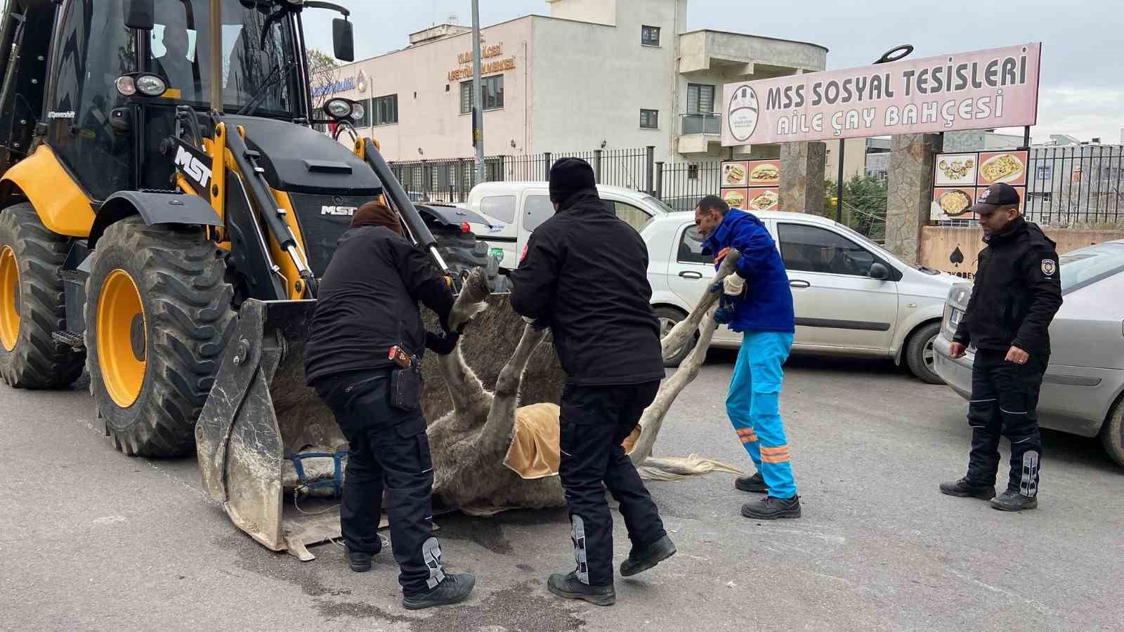 Bursa’da yolun ortasında yürüyen at yere yığılıp öldü. Çevredekilerin ihbarı üzerine olay yerine polis ve belediye ekipleri geldi.