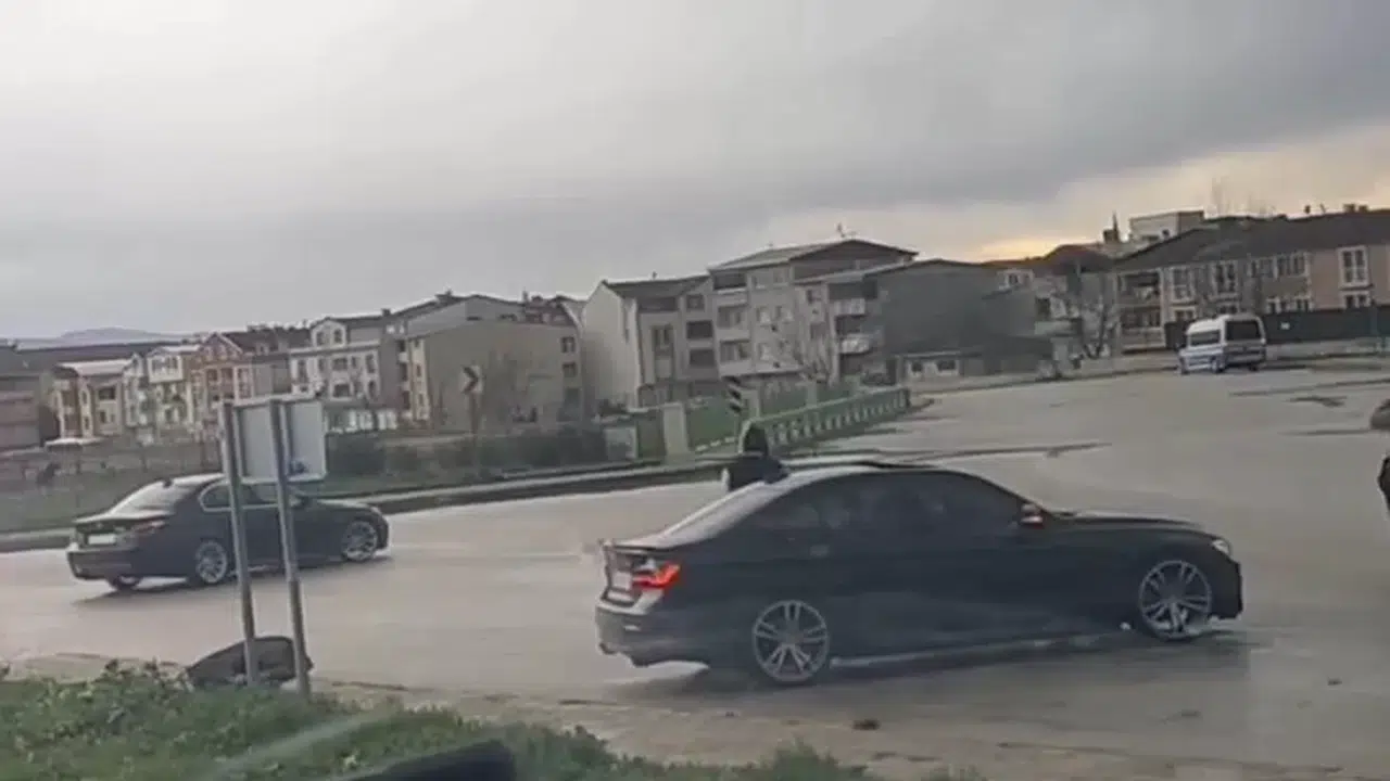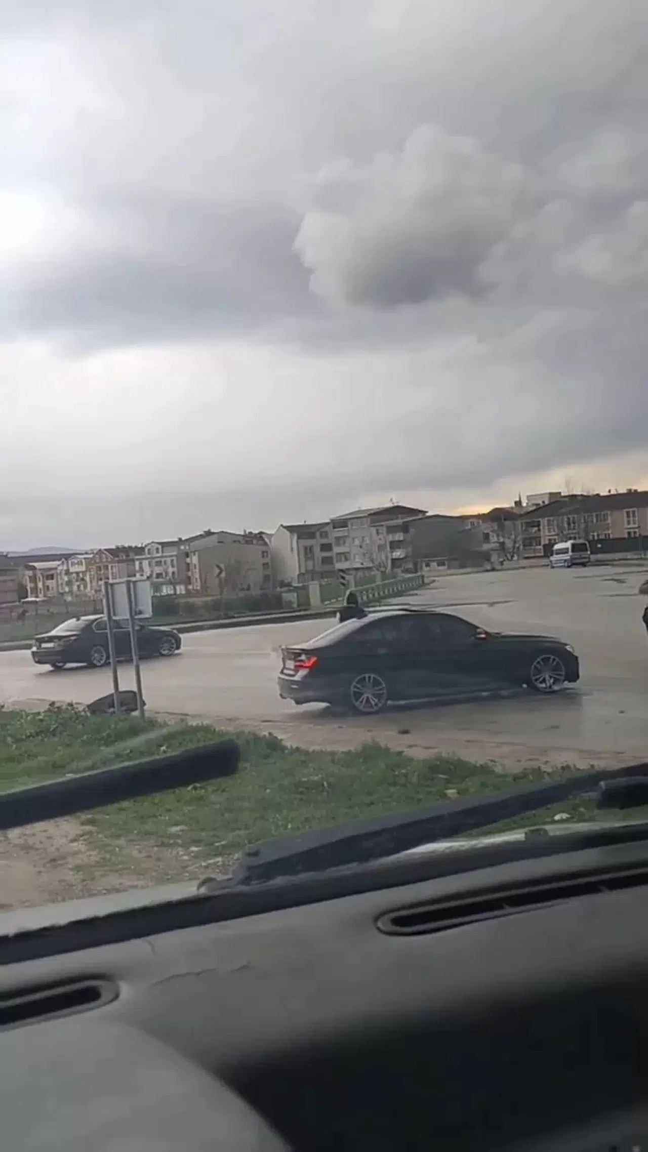 Drift atan aracın o anları cep telefon kamerasına yansıdı.