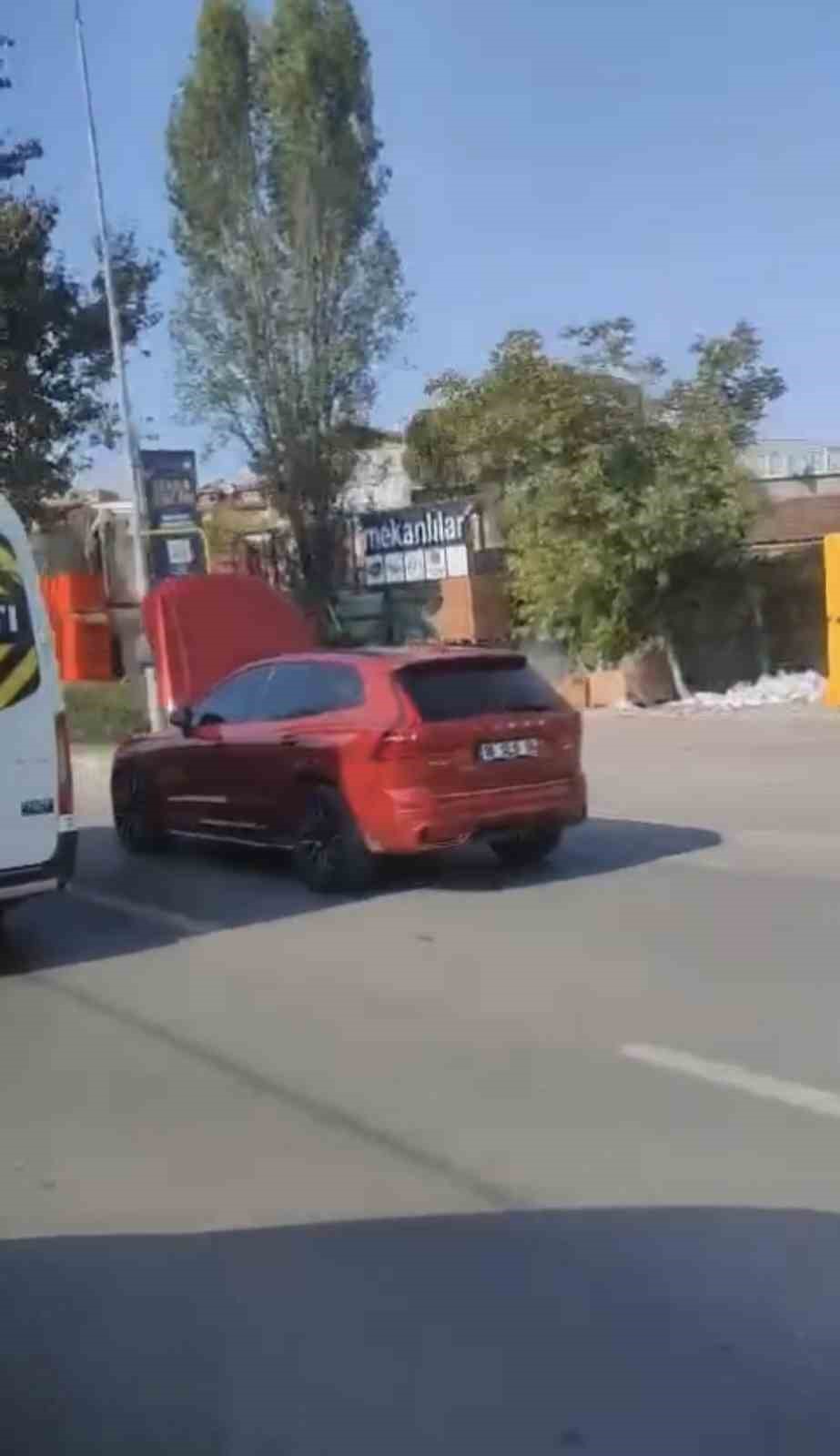 Bursa’da bir otomobil kaputu açık bir şekilde seyretmeye başladı. Tehlikeli anlar kameraya yansıdı.