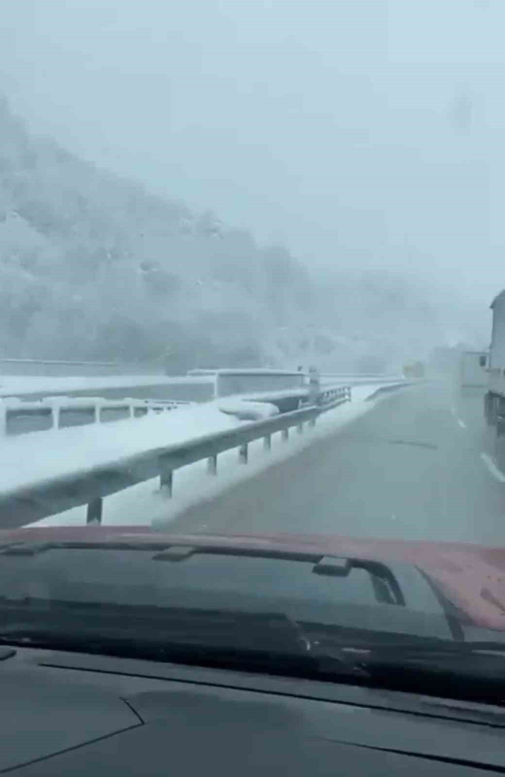 Bursa-Ankara karayolu Ümitalan ve Mezit boğazında yoğun kar yağışı sürücülere zor anlar yaşatıyor.