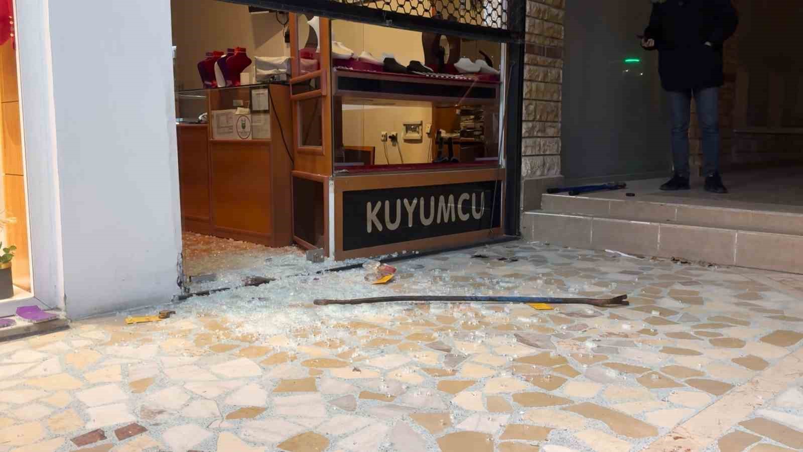 Olay, saat 04.30 sıralarında merkez Nilüfer ilçesi Konak Mahallesi Beşevler Caddesi üzerinde bulunan bir kuyumcu dükkanında meydana geldi. Edinilen bilgiye göre, daha önceden keşif yapan 4 şüpheli, otomobil ile gelip kuyumcu dükkanının önünde durdular. Etrafı kolaçan eden şüphelilerden 3’ü levye ile iş yerinin kepengini kırmak içi araçtan aşağı indi. Hem kepengi, hem de cam kapıyı kırarak içeri giren soyguncular vitrindeki 500 bin lira değerindeki altınları toplayarak hızla otomobile koştu. 4 şüpheli olay yerinden hızla kaçarken, ihbar üzerine olay yerine polis ekibi sevk edildi. Güvenlik kamerası ve olay yerindeki parmak izlerini inceleyen ekipler, şüphelilerin yakalanması için çalışma başlattı.