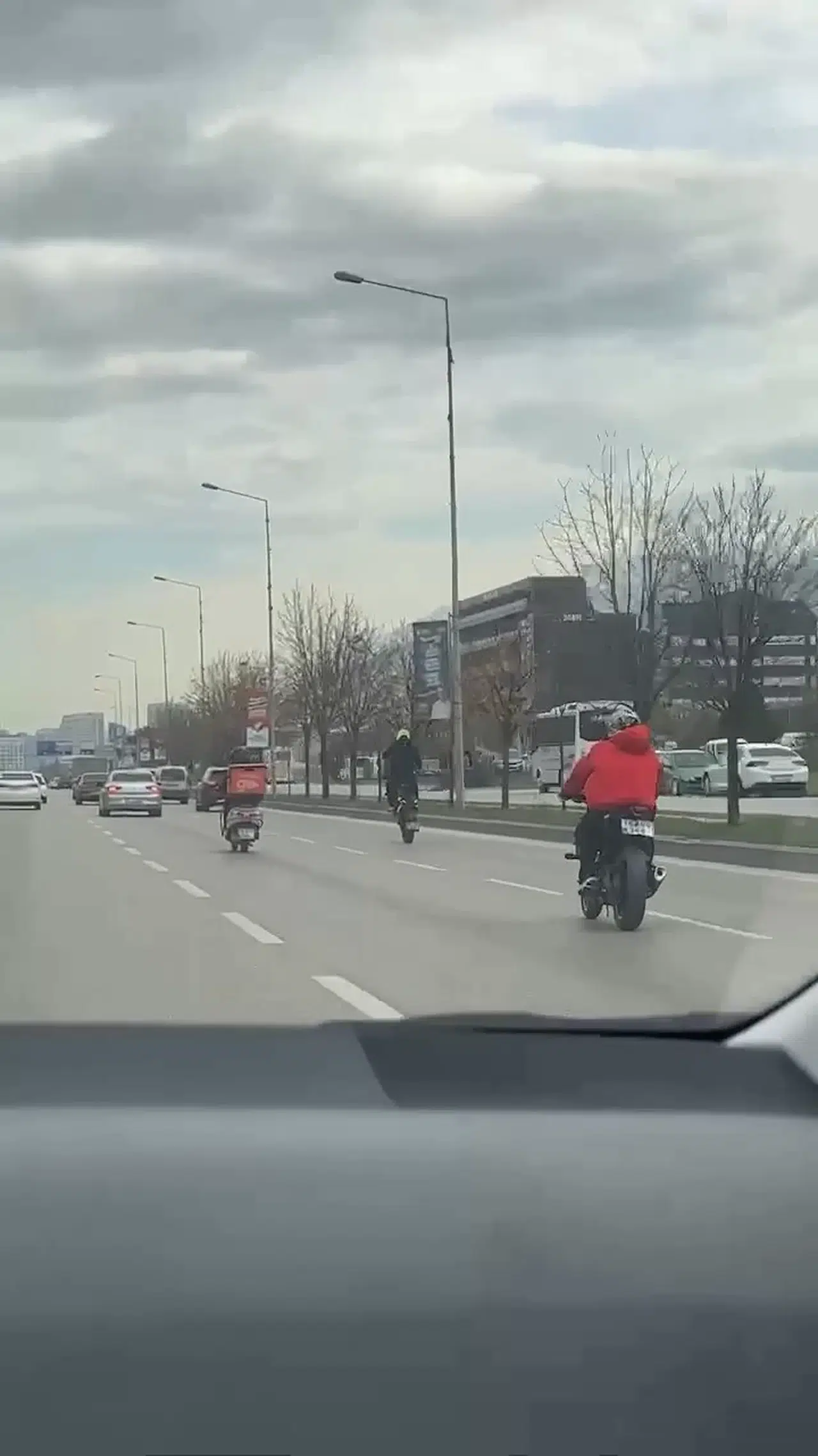 Edinilen bilgiye göre, trafikte motosiklet ile ön tekerleği kaldırıp tehlikeli hareketler yapan motosikletli iki kafadar, diğer sürücülerin yüreklerini ağzına getirdi. Bir süre tehlikeli seyreden motosikletler, daha sonra farklı caddelere girerek gözden kaybolurken o anlar trafikteki başka bir sürücünün kamerasına yansıdı.