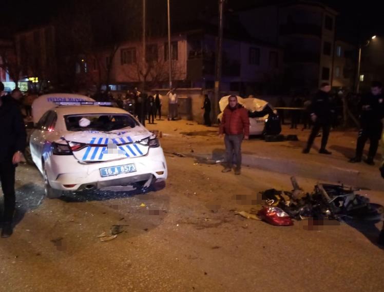 Bursa’nın İnegöl ilçesinde bir polis aracı, bir otomobil ile elektrikli bisikletin karıştığı zincirleme kazada 2’si polis 4 kişi yaralandı.