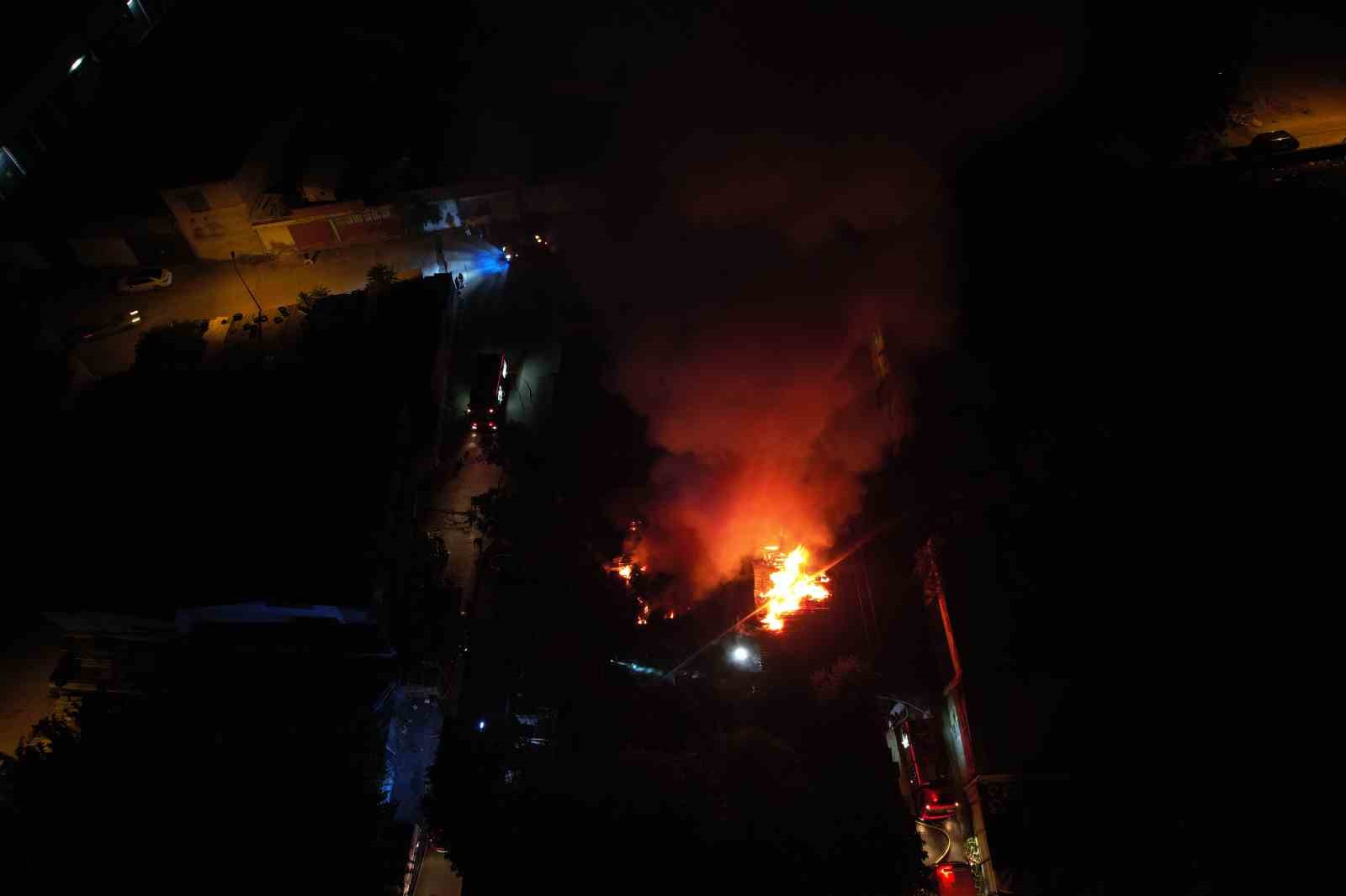 Alevlerin geceyi aydınlattığı yangının çıkış sebebi araştırılıyor.