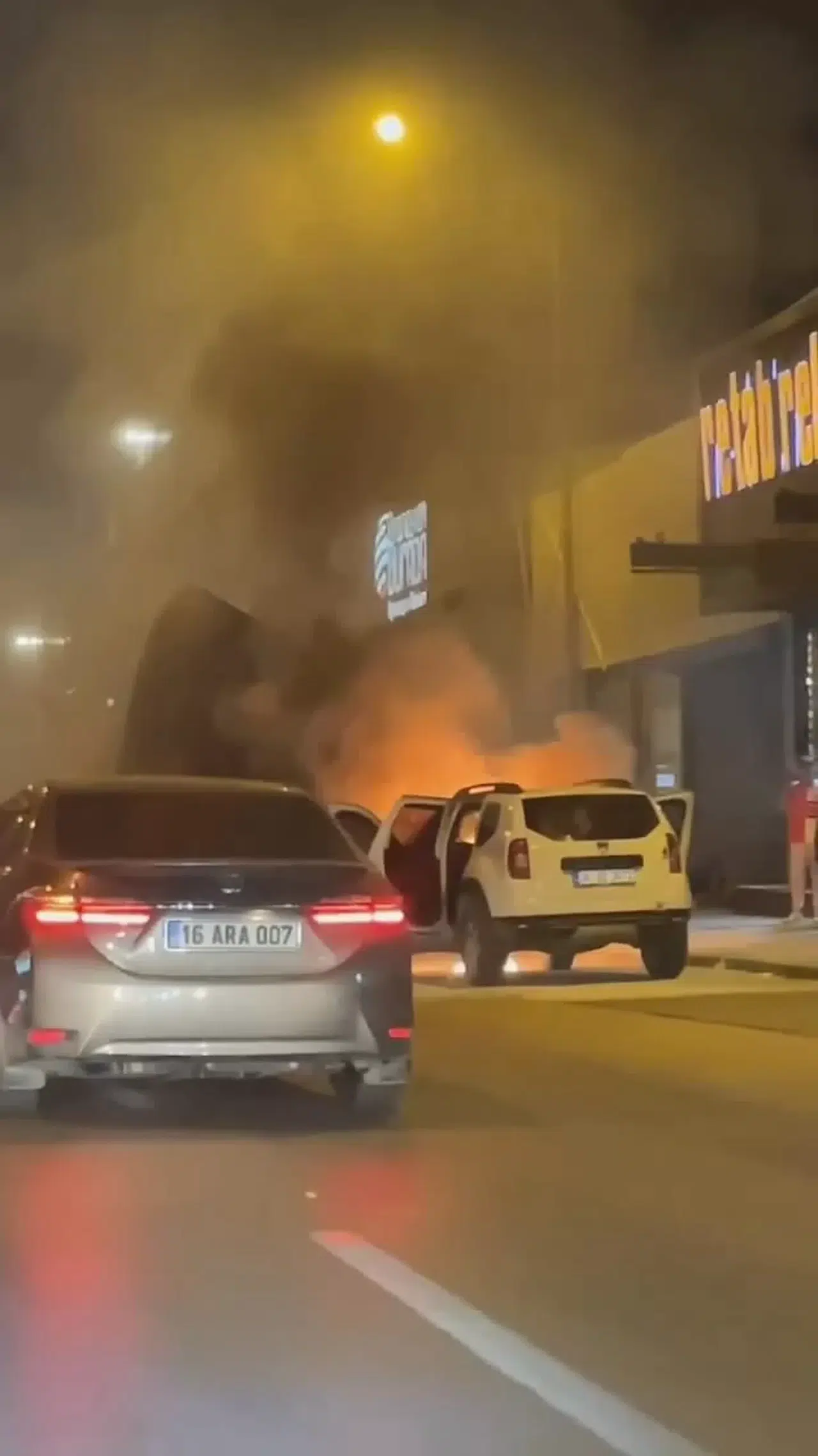 Olay, merkez Osmangazi ilçesi Santral Garaj Mahallesi İzmir Yolu Caddesi üzerinde meydana geldi. Edinilen bilgiye göre, seyir halindeki otomobilin motor kısmından dumanların çıktığını gören sürücü otomobilini sağa çekti. Otomobil bir süre sonra alev topuna döndü. İhbar üzerine olay yerine itfaiye ekipleri sevk edildi. Ekipler, yanan otomobili kısa sürede söndürdü. Yangında can kaybı meydana gelmezken, otomobilde hasar meydana geldi.